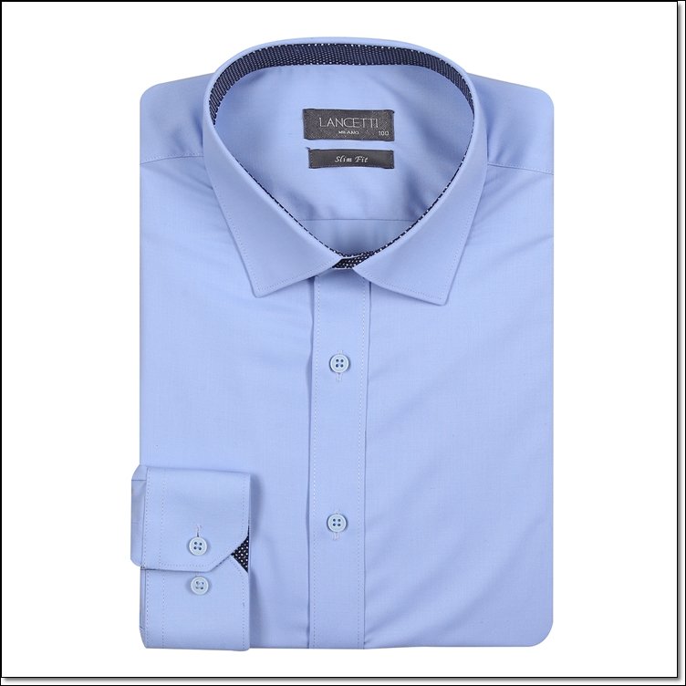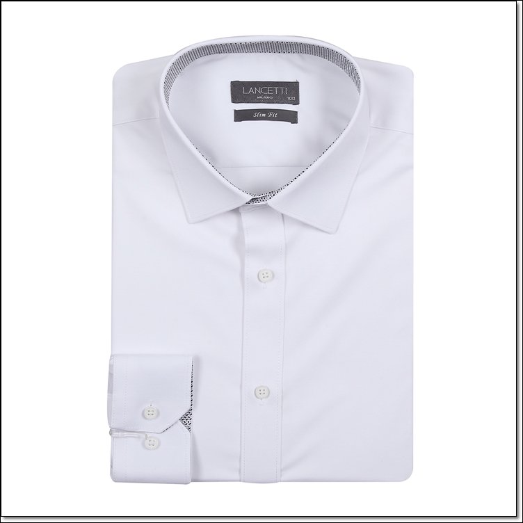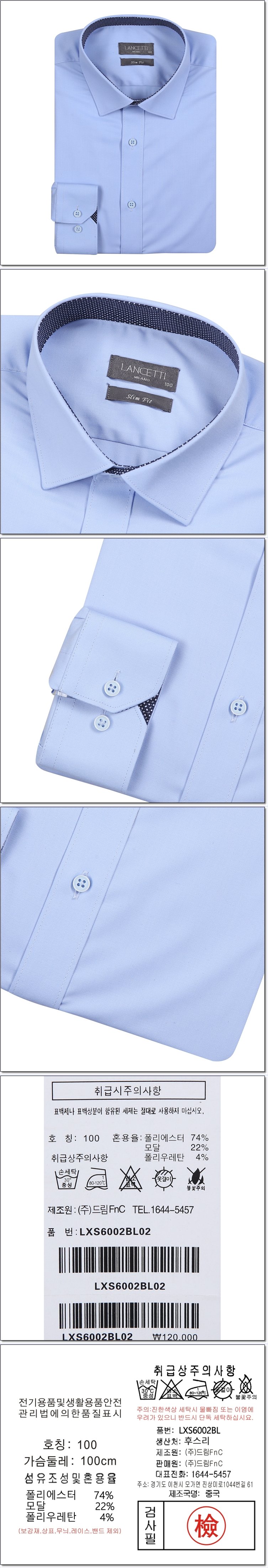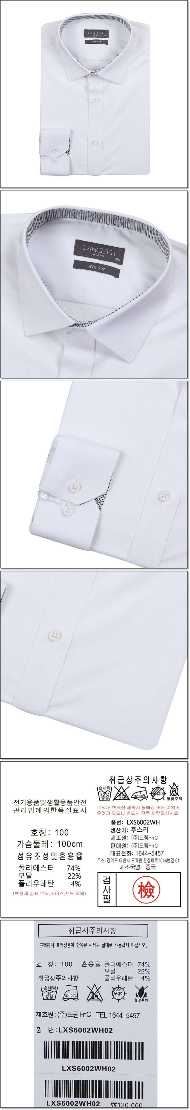 화이트/블루 모달 스판혼방 슬림핏 긴소매 와이셔츠