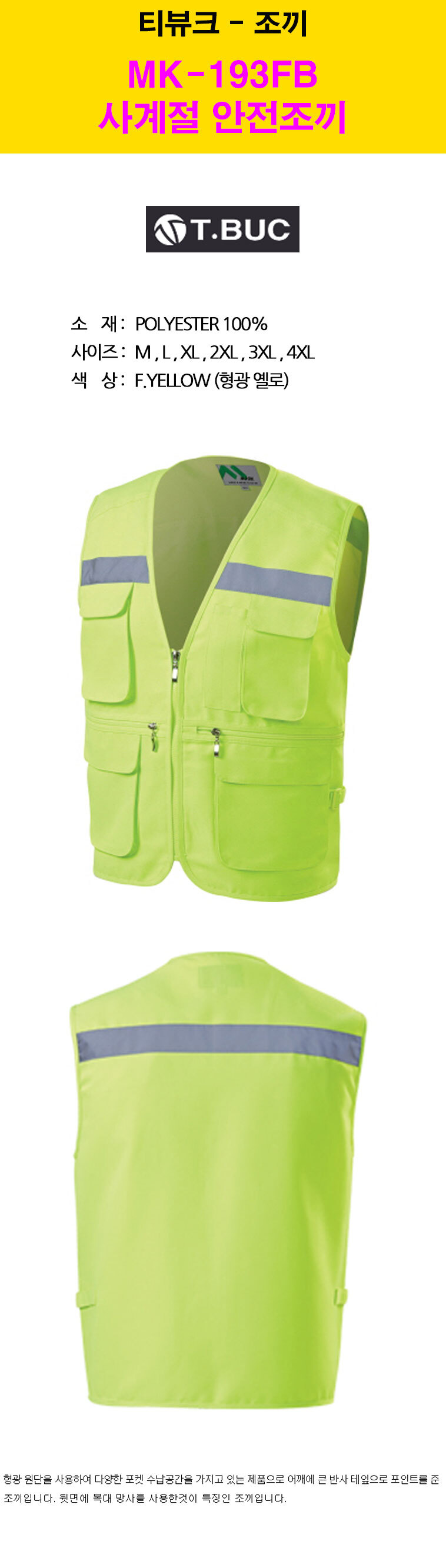봄 여름 TC-V 망사 조끼 MK-193FB 형광옐로 남자 남성 작업용 낚시 등산 유니폼