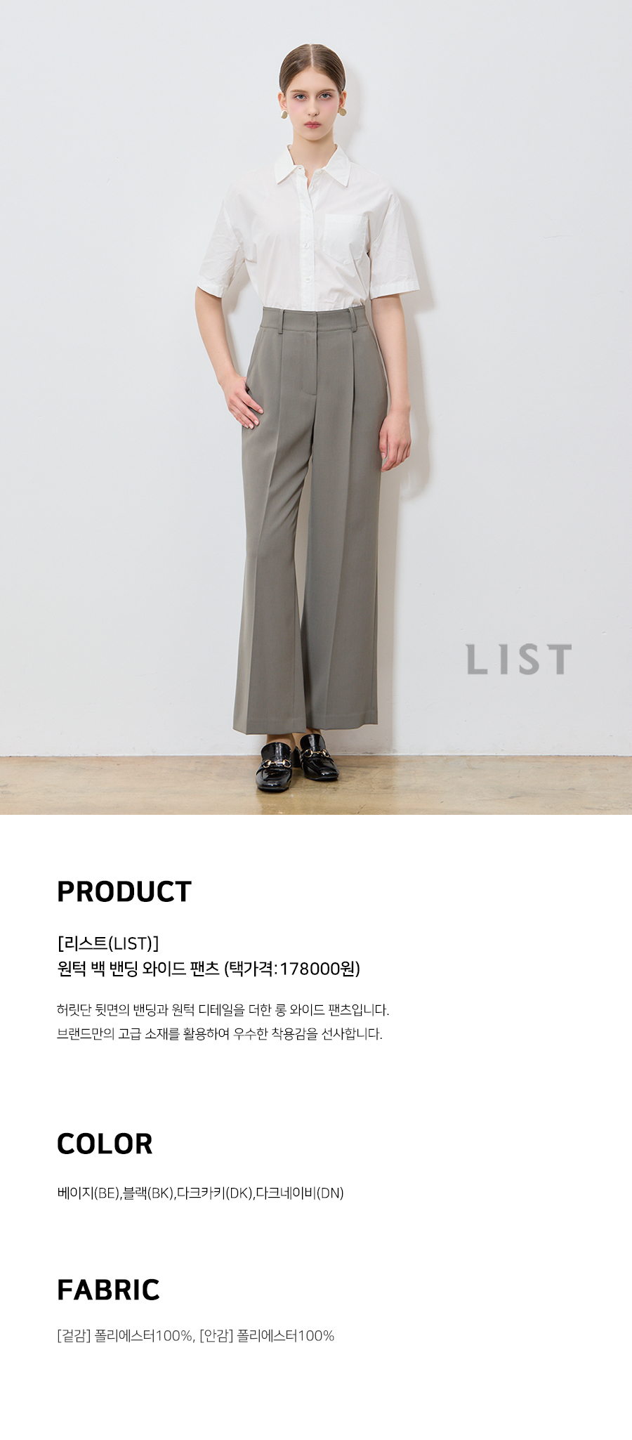 LIST) 프리미엄라인 원턱 백 밴딩 와이드 팬츠 택가격 178000원)