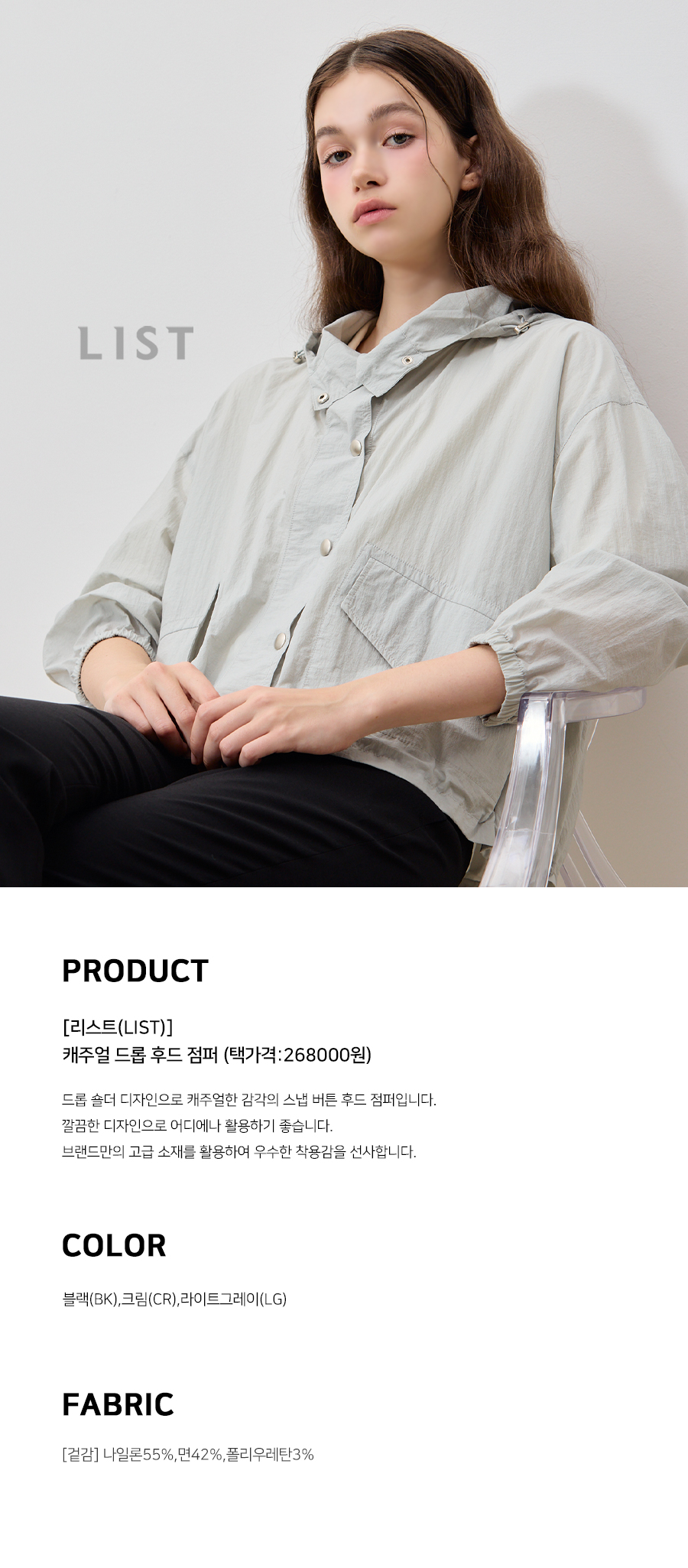 LIST) 루나 캐주얼 드롭 후드 점퍼 택가격 268000원)