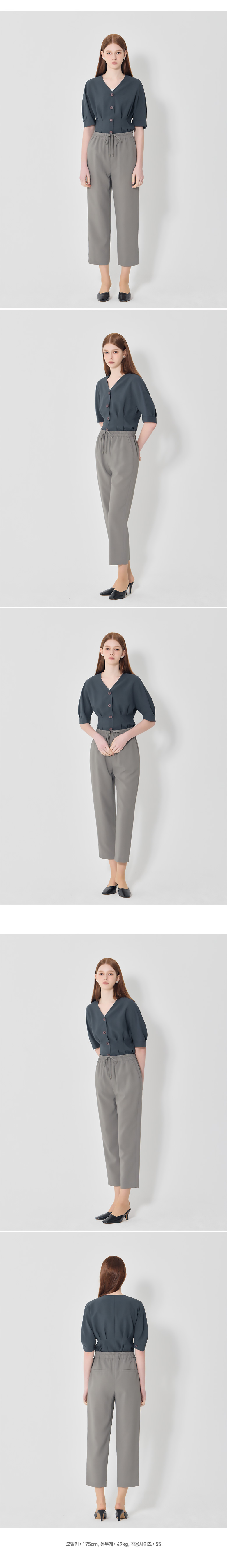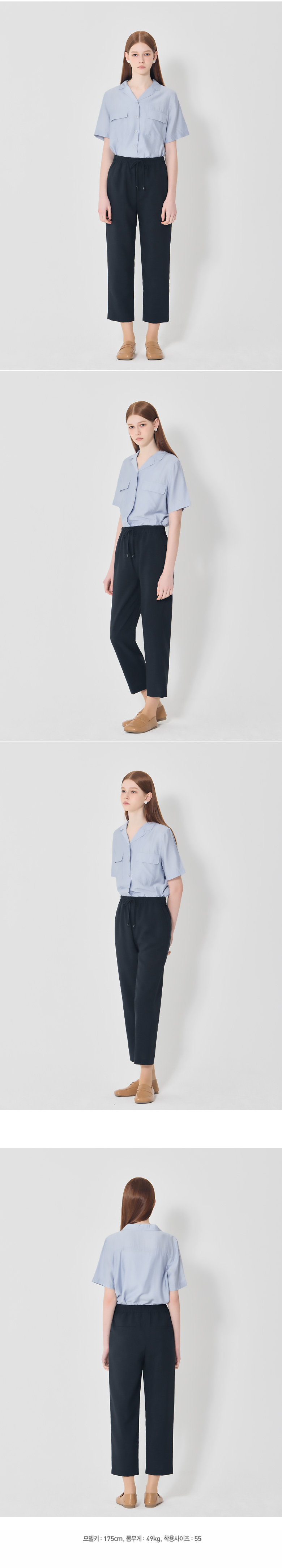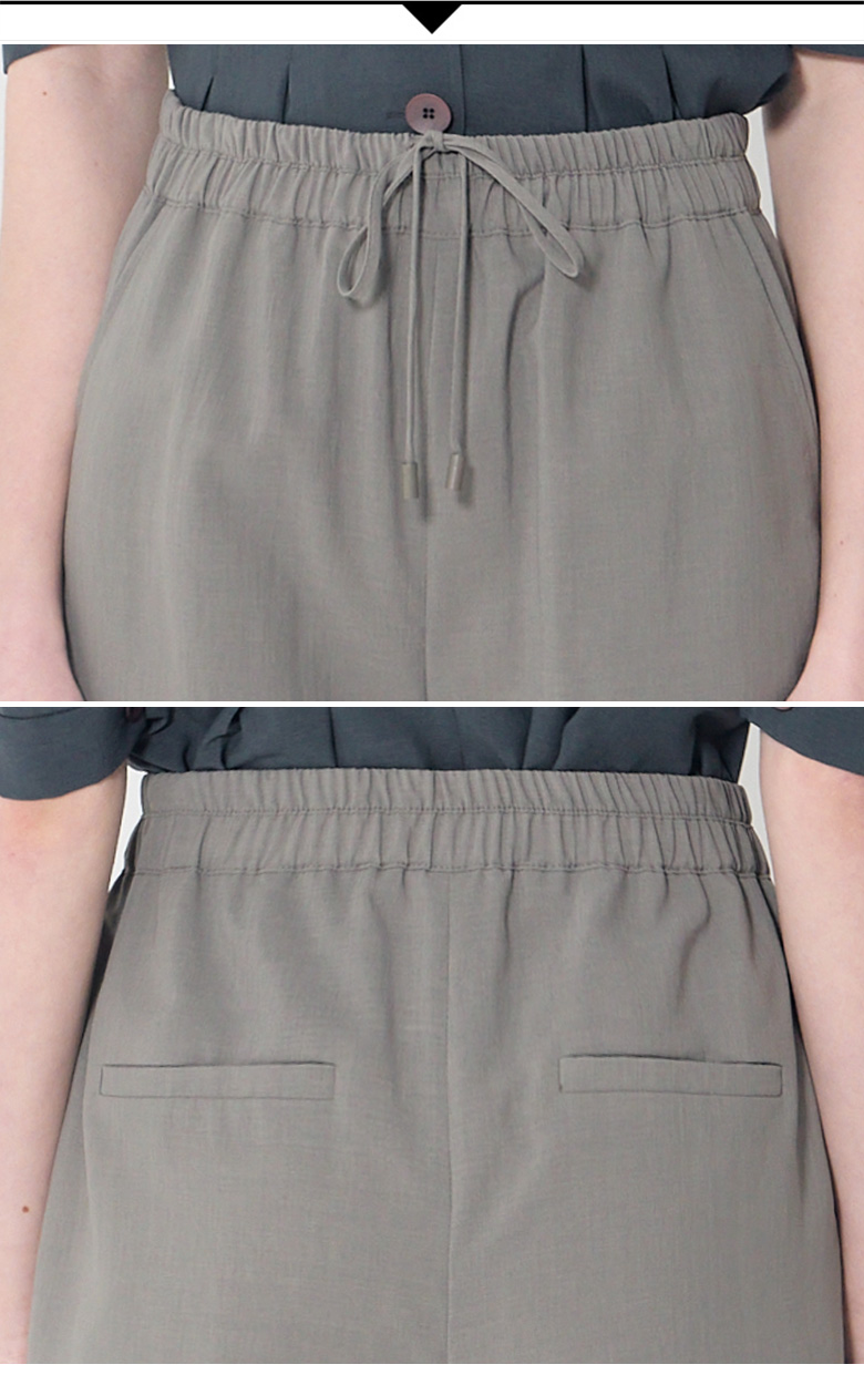 밴딩과 스트링 디테일로 이지한 무드를 연출하는 팬츠입니다.