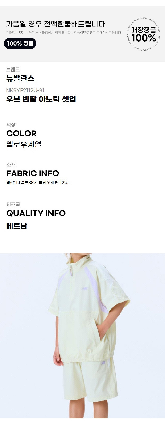(현대Hmall)뉴발란스키즈트레이닝세트 PQC NK9YF2112U-31 우븐 반팔 아노락 셋업