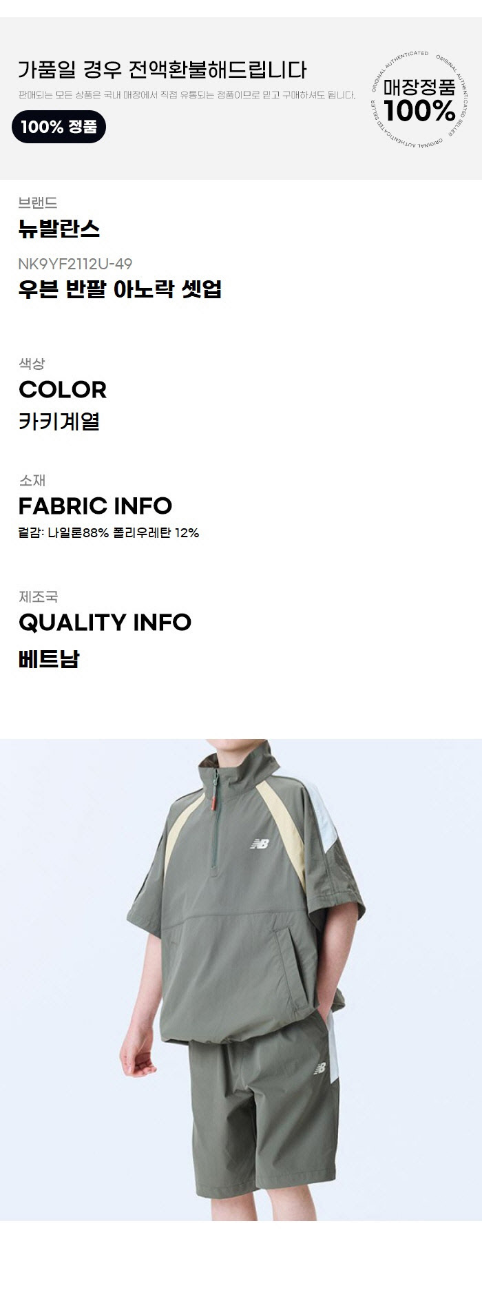 (현대Hmall)뉴발란스키즈트레이닝세트 PQC NK9YF2112U-49 우븐 반팔 아노락 셋업
