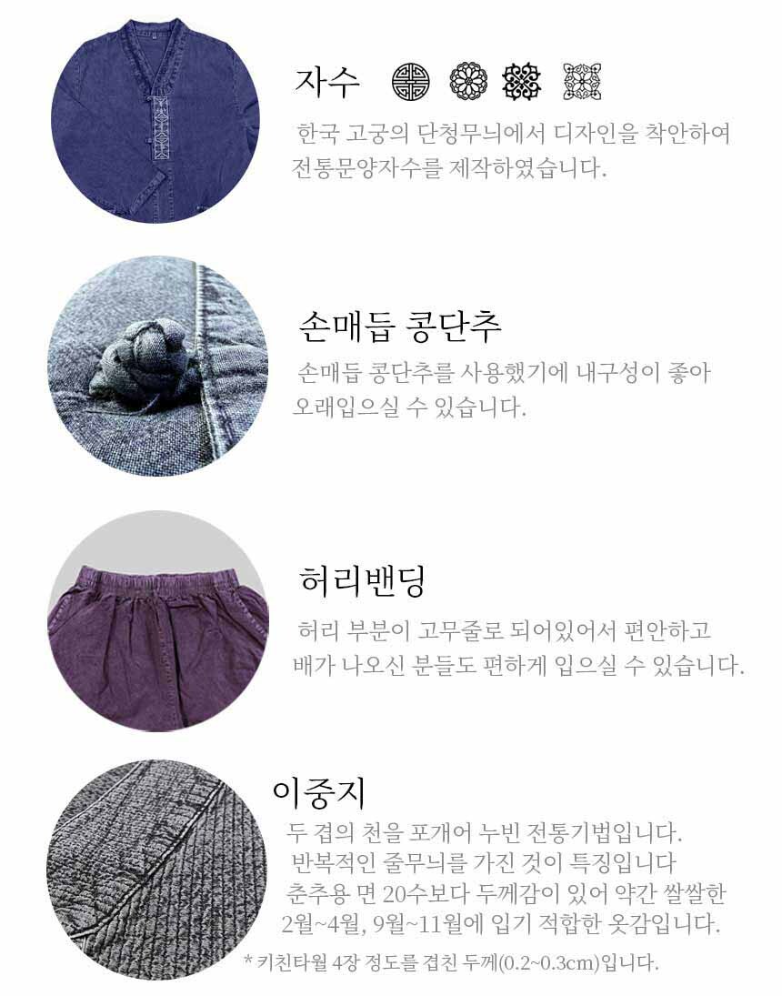 백제봉 생활한복 남자 여자 개량한복 남성 여성 겨울 이중지 저고리 바지 누비 조끼 법복 절복 절옷
