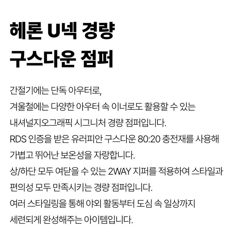 내셔널지오그래픽 남여공용 경량 패딩 구스 다운 U넥 25년 신상+내셔널 양말 증정