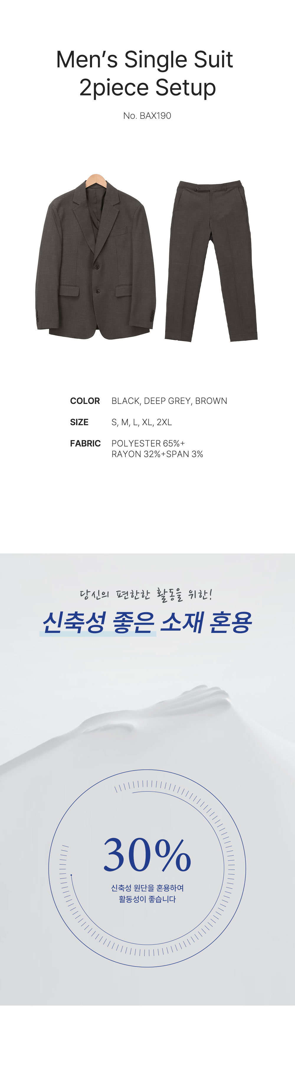 남성 싱글자켓 수트 2피스 셋업 테일러드 베이직 정장세트 하객룩 BAX190