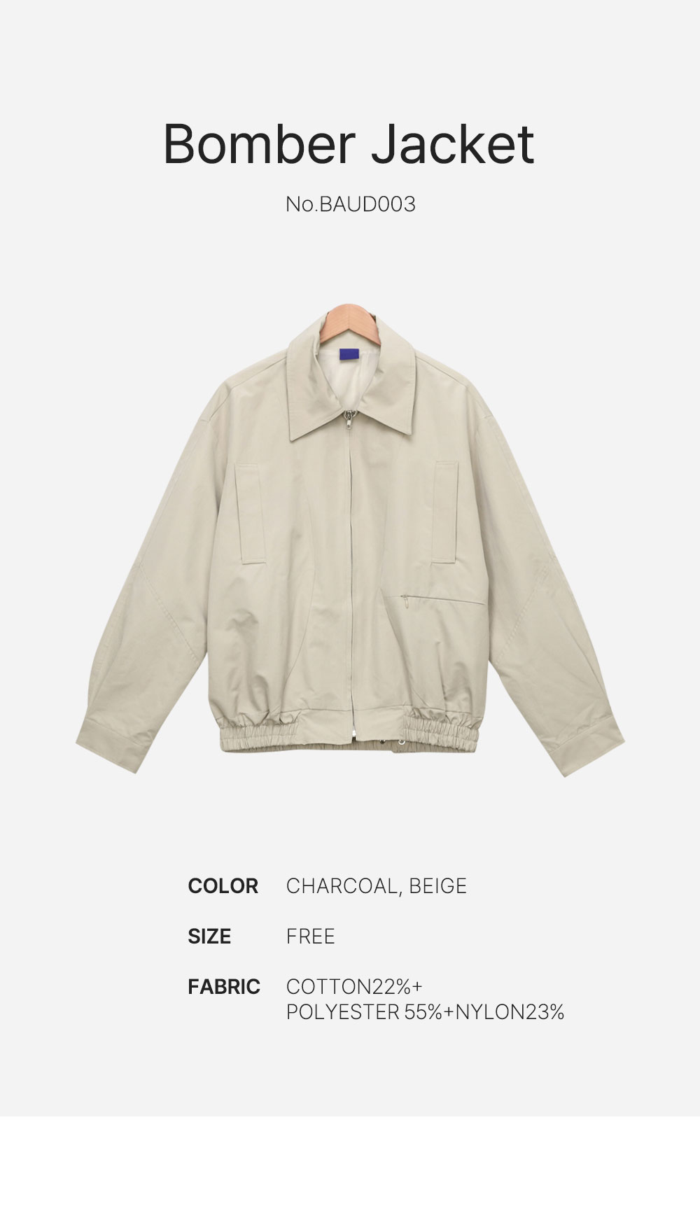 남성 가을 봄버자켓 절개 포인트 바람막이 점퍼 데일리 아우터 BAUD003