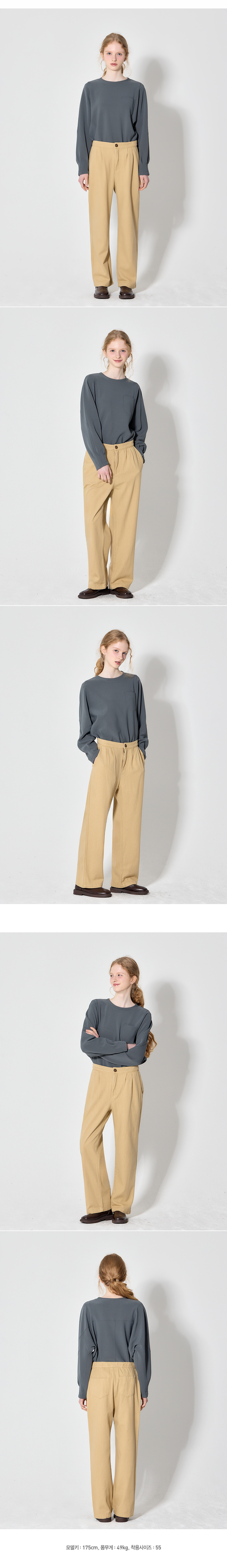 핀턱 디테일로 포멀&캐주얼 무드를 더한 코튼 배기 팬츠입니다.