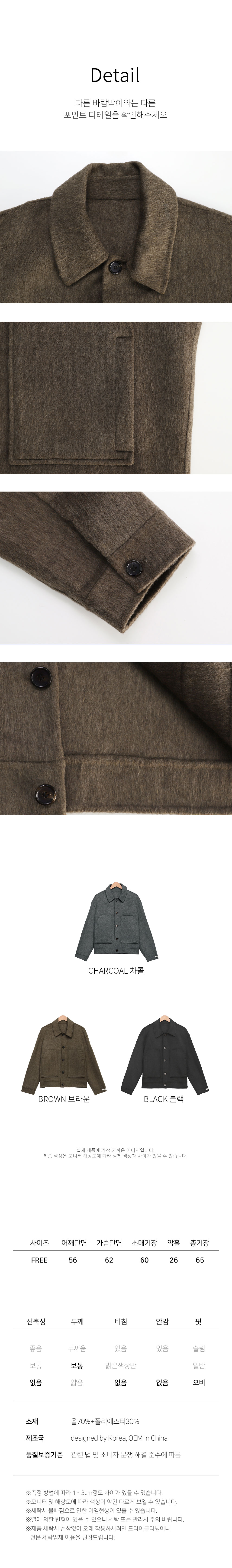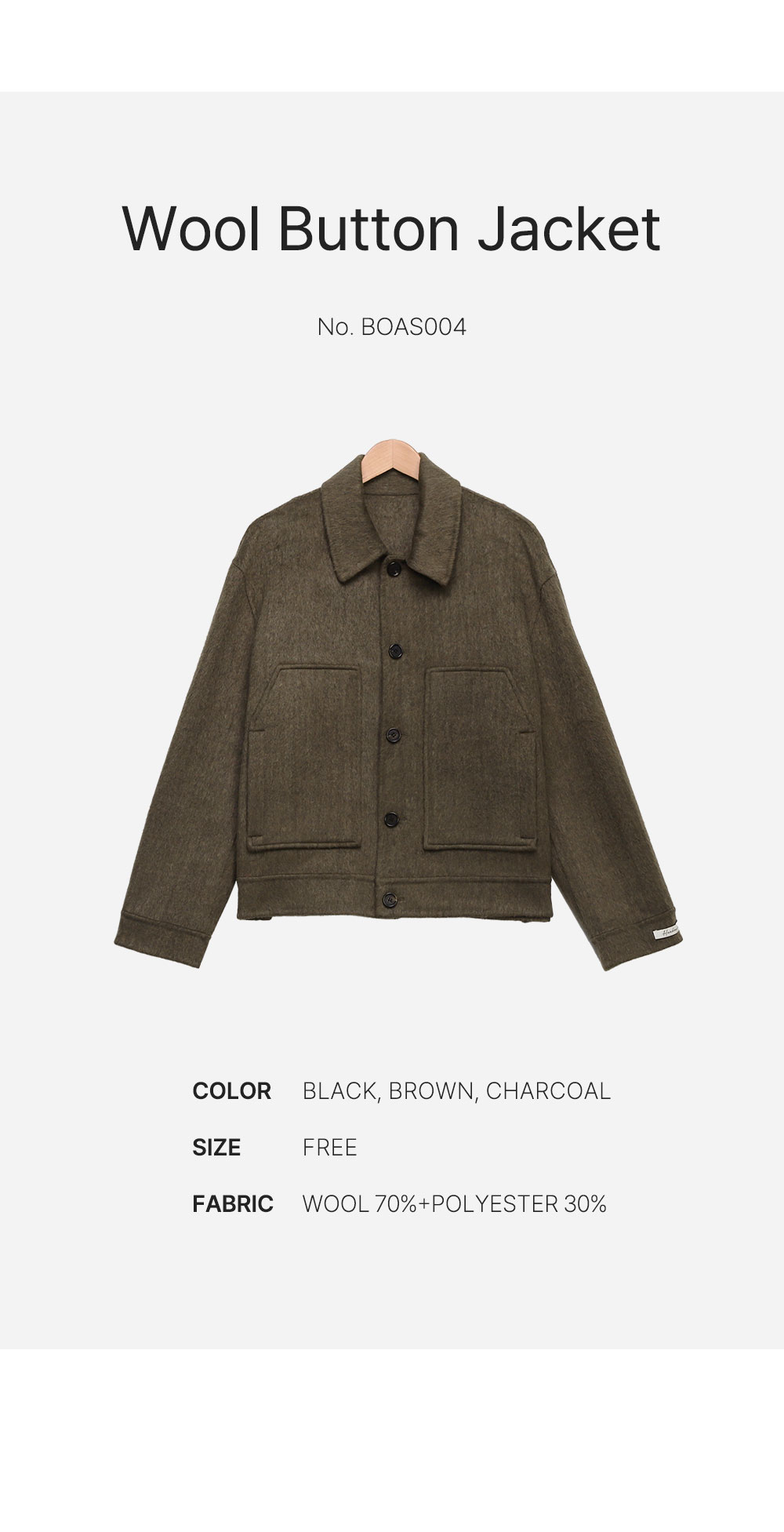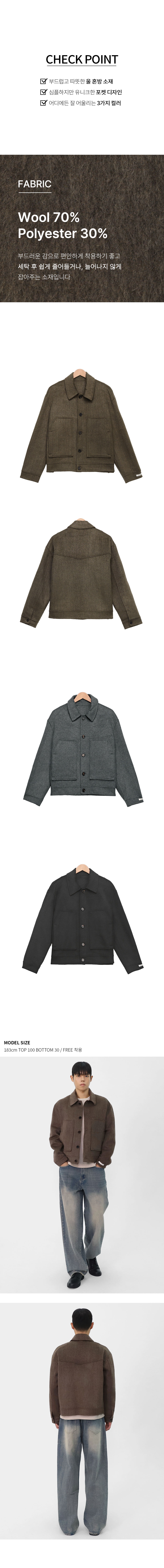 남자 울 코트 숏기장 세미오버핏 간절기 자켓 BOAS004