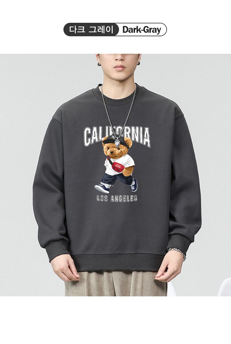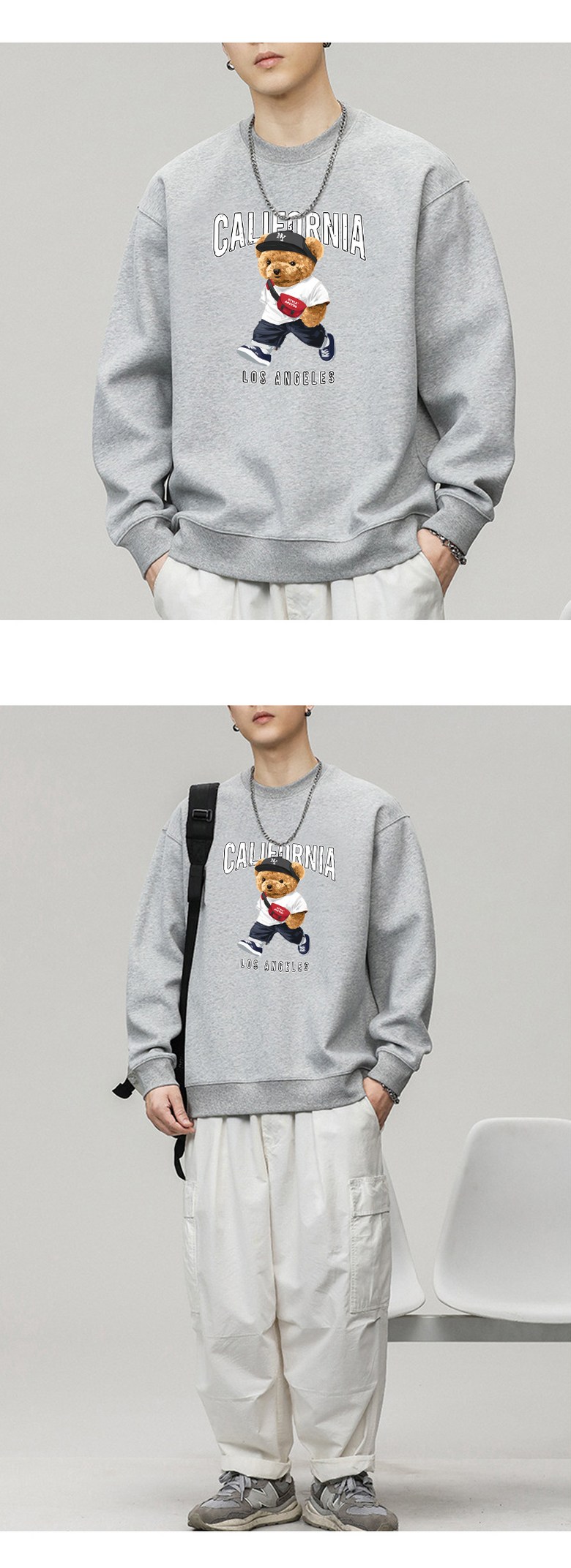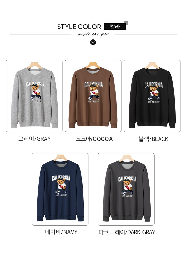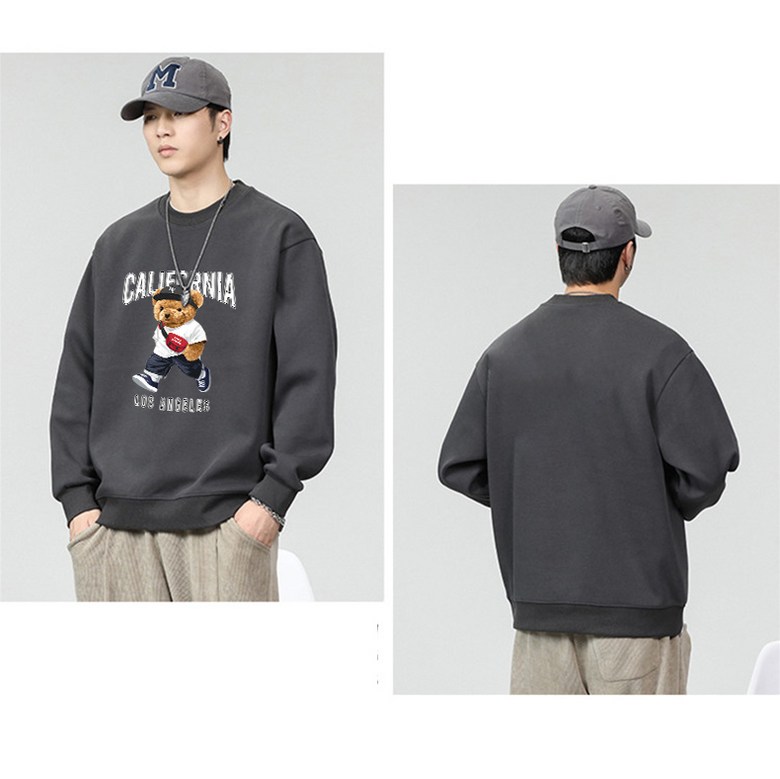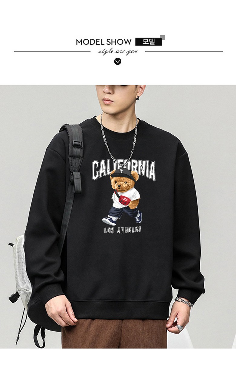 1+1(2장세트) 스타일아유 가을 맨투맨 코튼 라운드넥 유니크 베어 프린트 캐주얼 남성용 TS3064