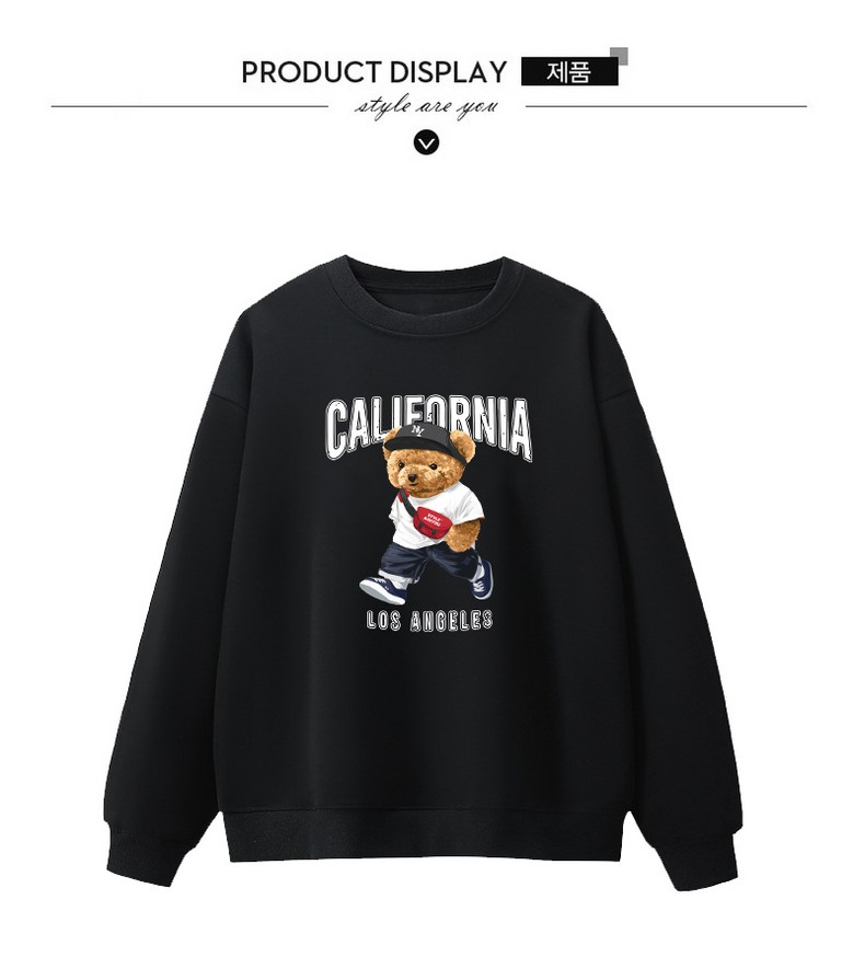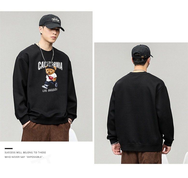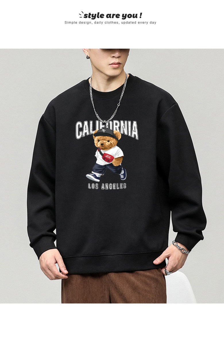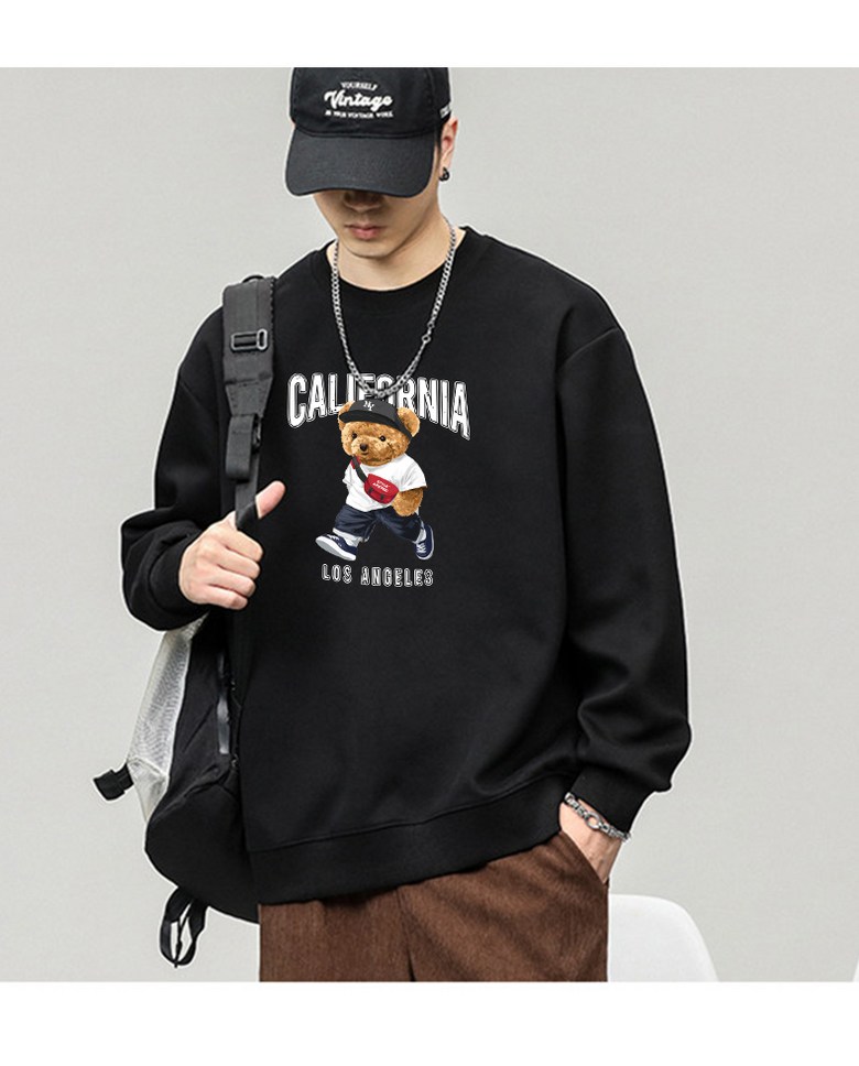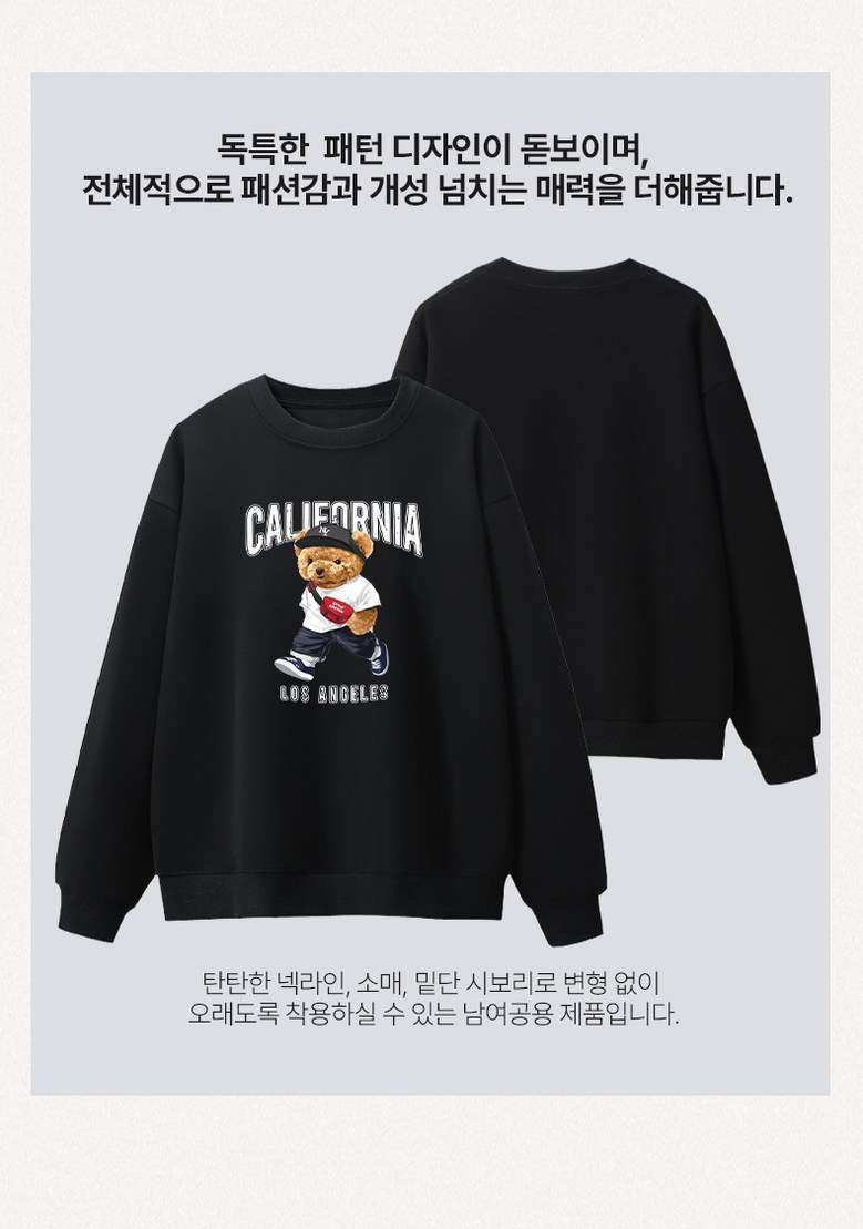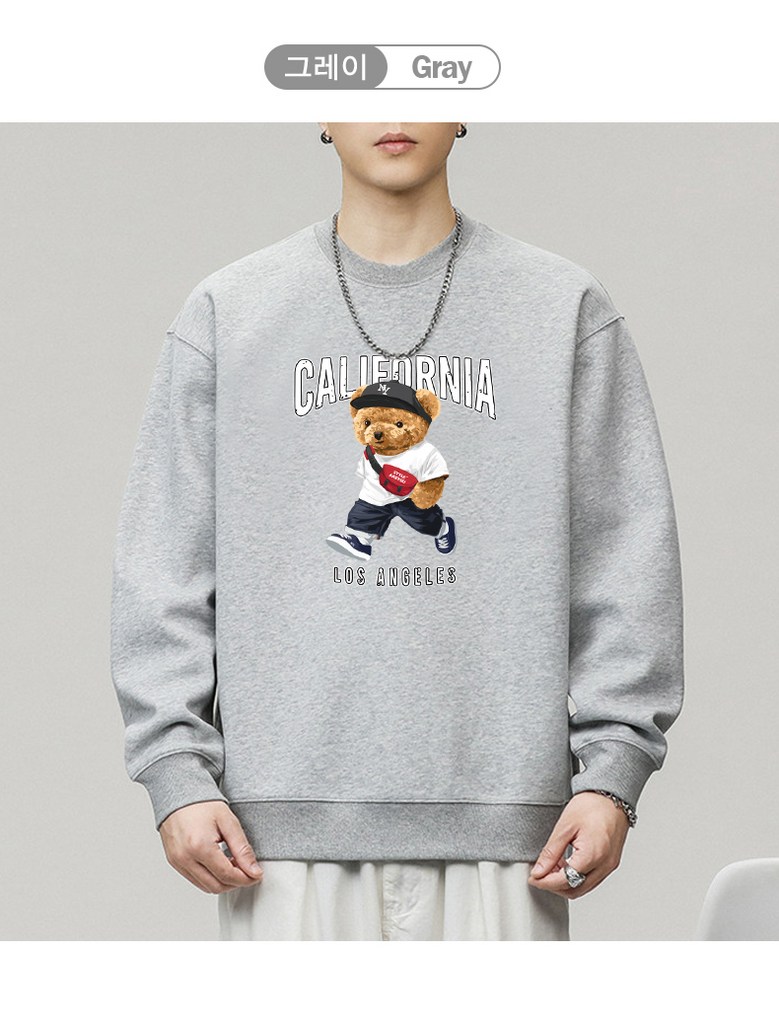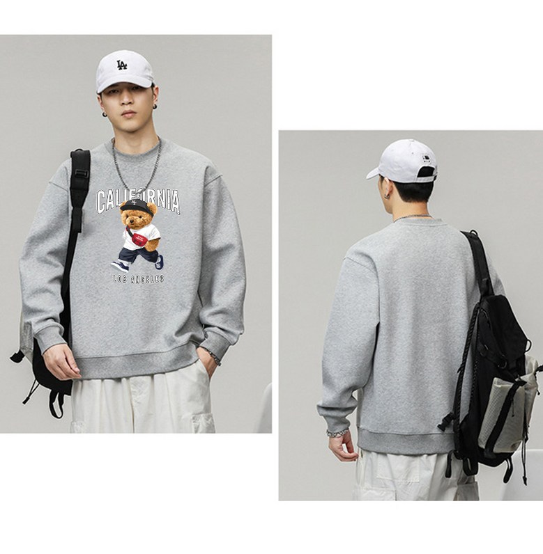 1+1(2장세트) 스타일아유 가을 맨투맨 코튼 라운드넥 유니크 베어 프린트 캐주얼 남성용 TS3064