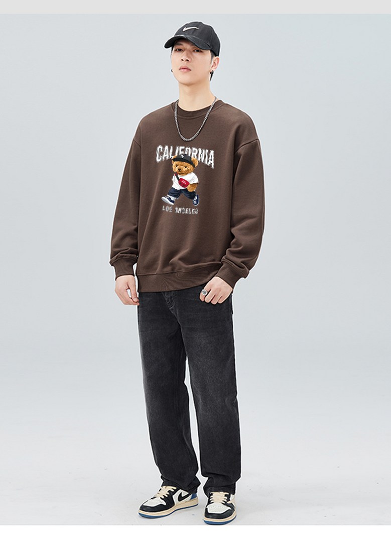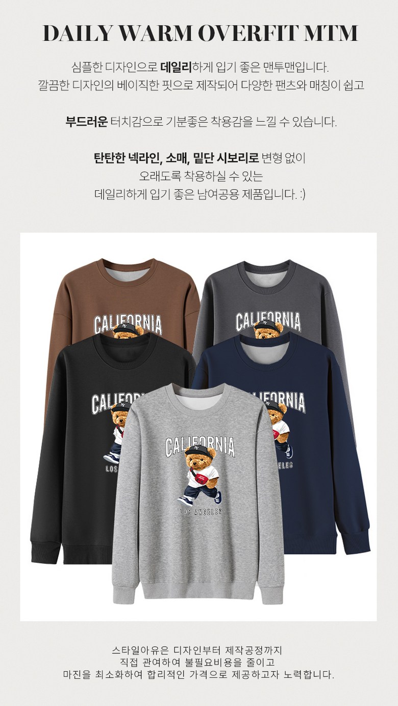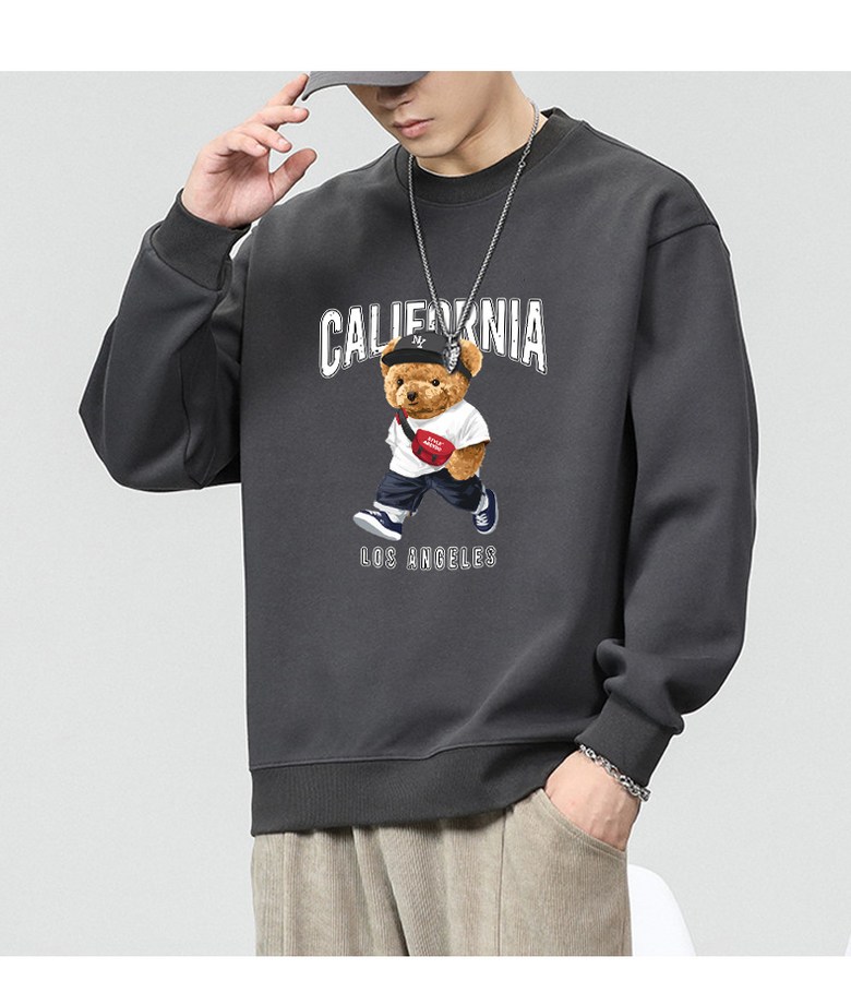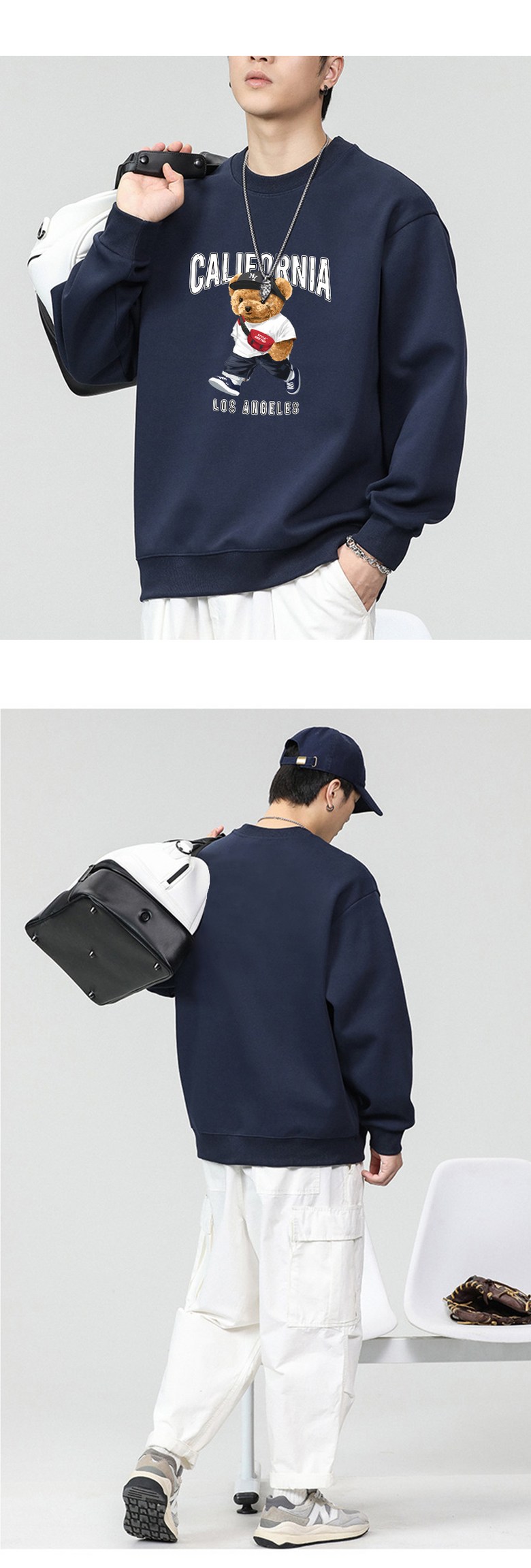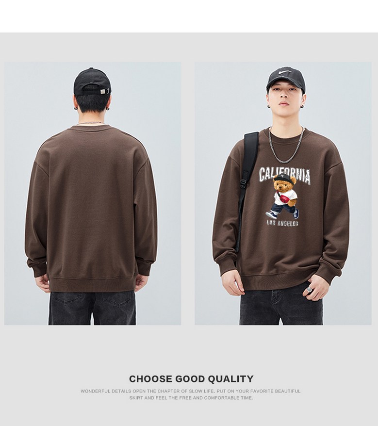 1+1(2장세트) 스타일아유 가을 맨투맨 코튼 라운드넥 유니크 베어 프린트 캐주얼 남성용 TS3064