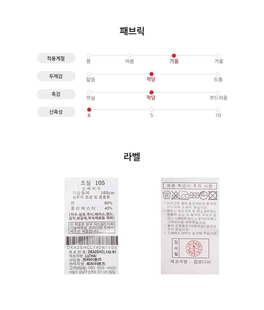 일상 착용 시 자연스러운 구김이 생기는 상품으로 세탁 후 일반/스팀 다리미로 관리해주세요.