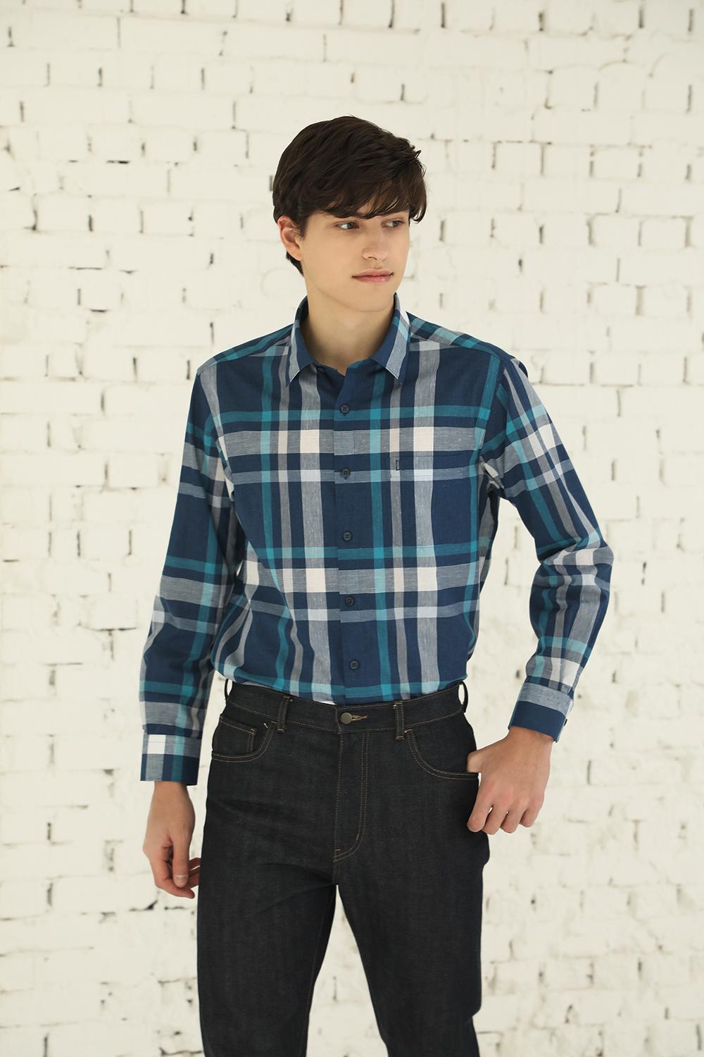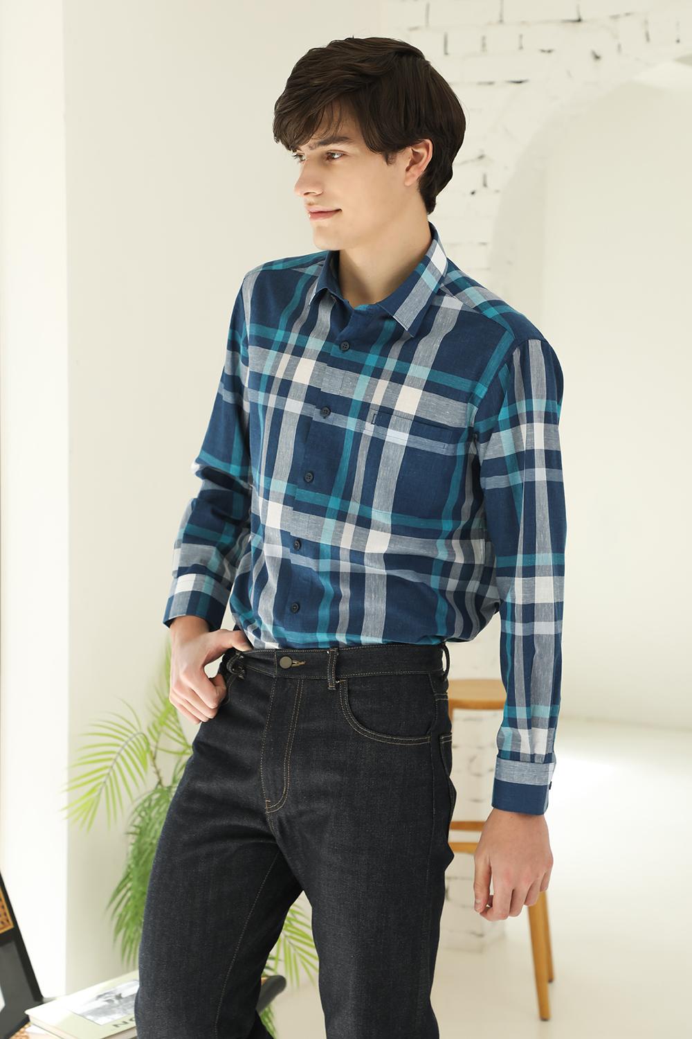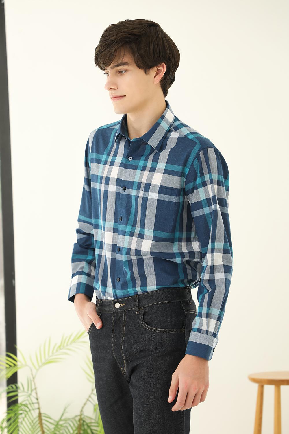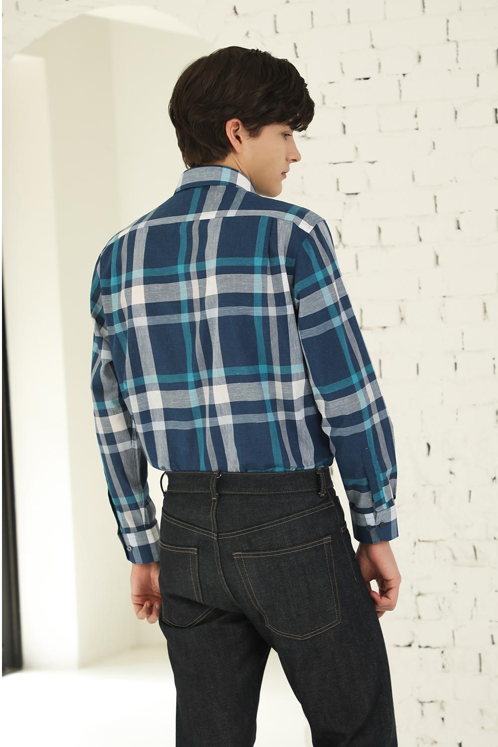 린넨혼방 슈퍼빅체크 셔츠 레귤러핏 네이비