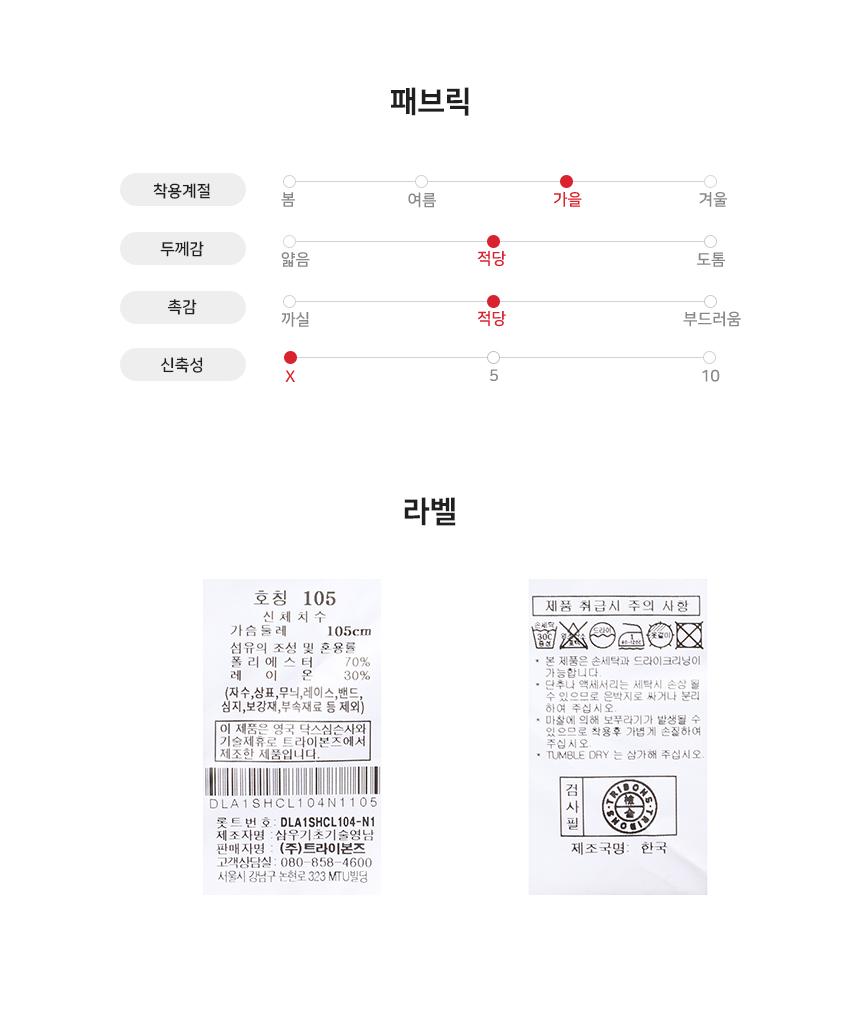 손세탁이 가능하며, 구김이 덜 가는 제품으로 손질과 관리가 용이합니다.