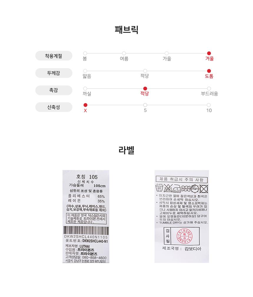 기모가 된 폴리/레이온 혼방 제품으로 착용 시 부드럽고 보온성이 좋으며