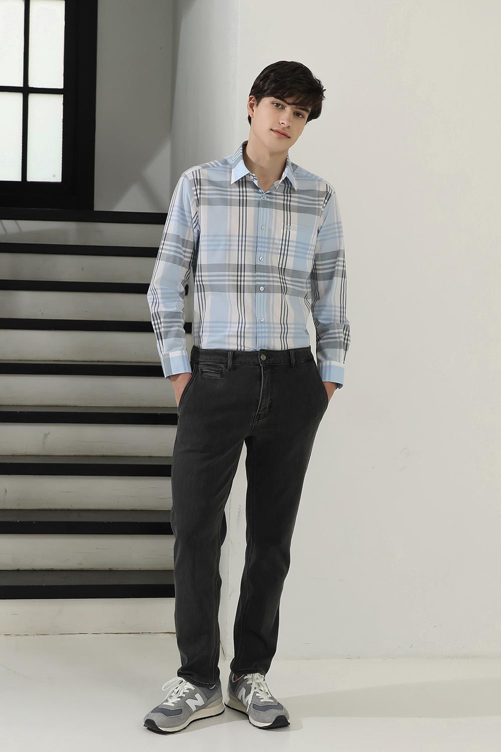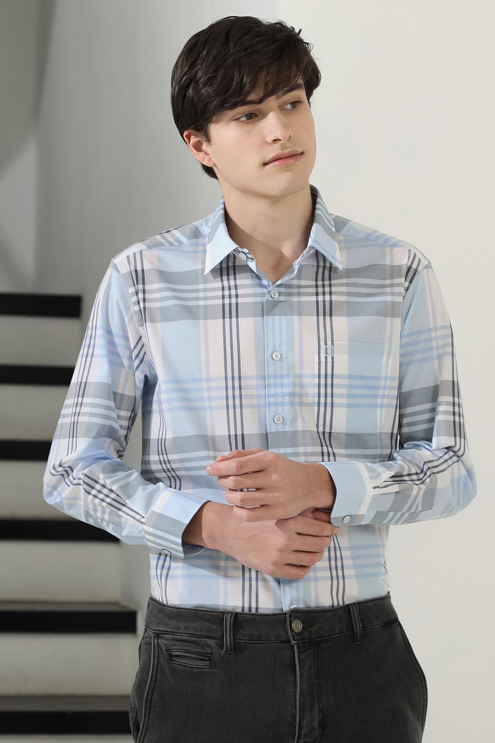 면혼방 라지체크 셔츠 레귤러핏 블루