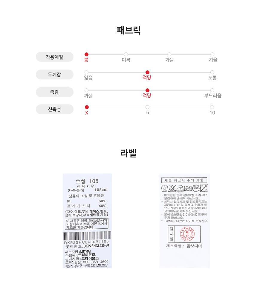 일상 착용 시 자연스러운 구김이 생기는 상품으로 세탁 후 일반/스팀 다리미로 관리해주세요.
