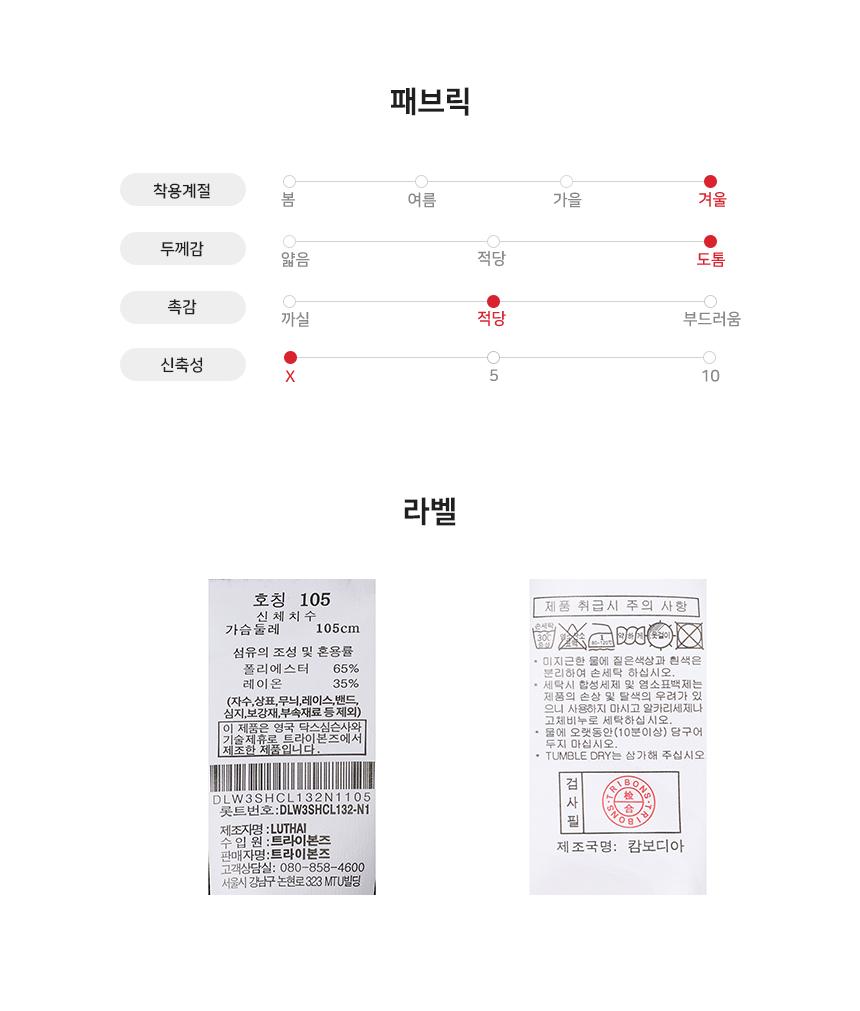 활용도 높은 네이비 컬러에 레드 컬러를 포인트로 활용하여 FW시즌에 돋보이며