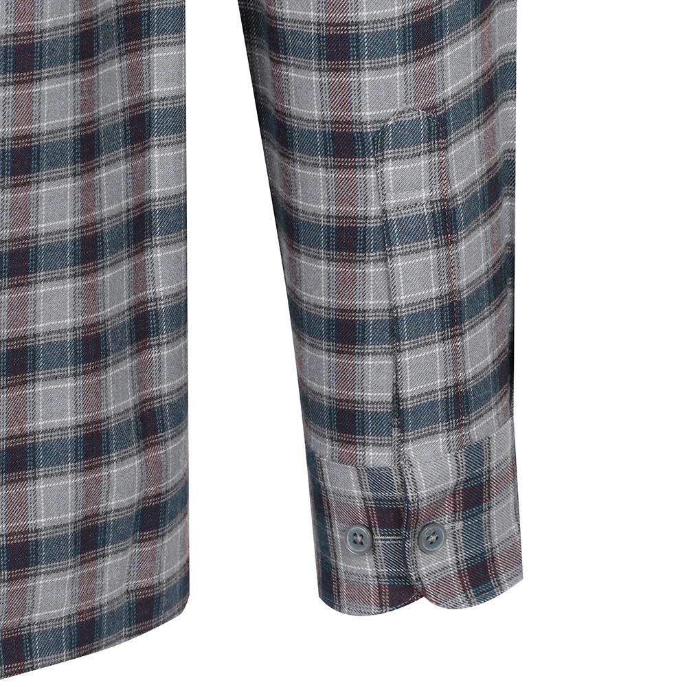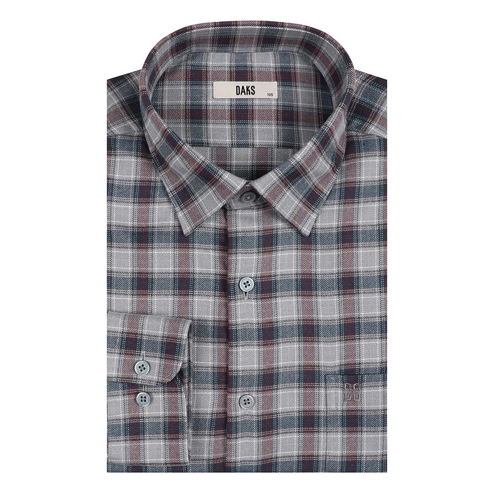 고급스러운 멜란지 그레이 컬러와 그린&레드 데코 컬러가 돋보이는 캐주얼 셔츠