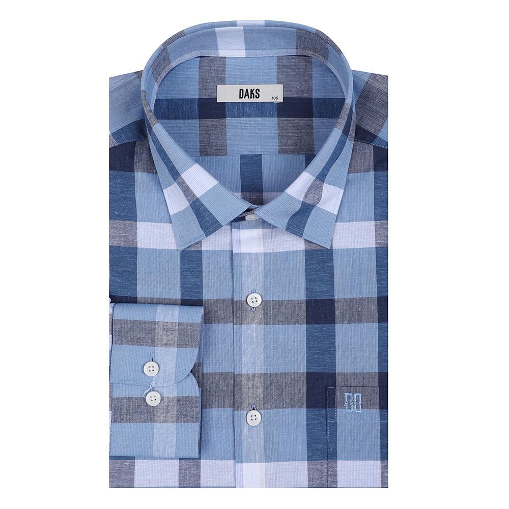 닥스린넨혼방 라지체크 셔츠 레귤러핏 블루_DLS2SHCL130B1