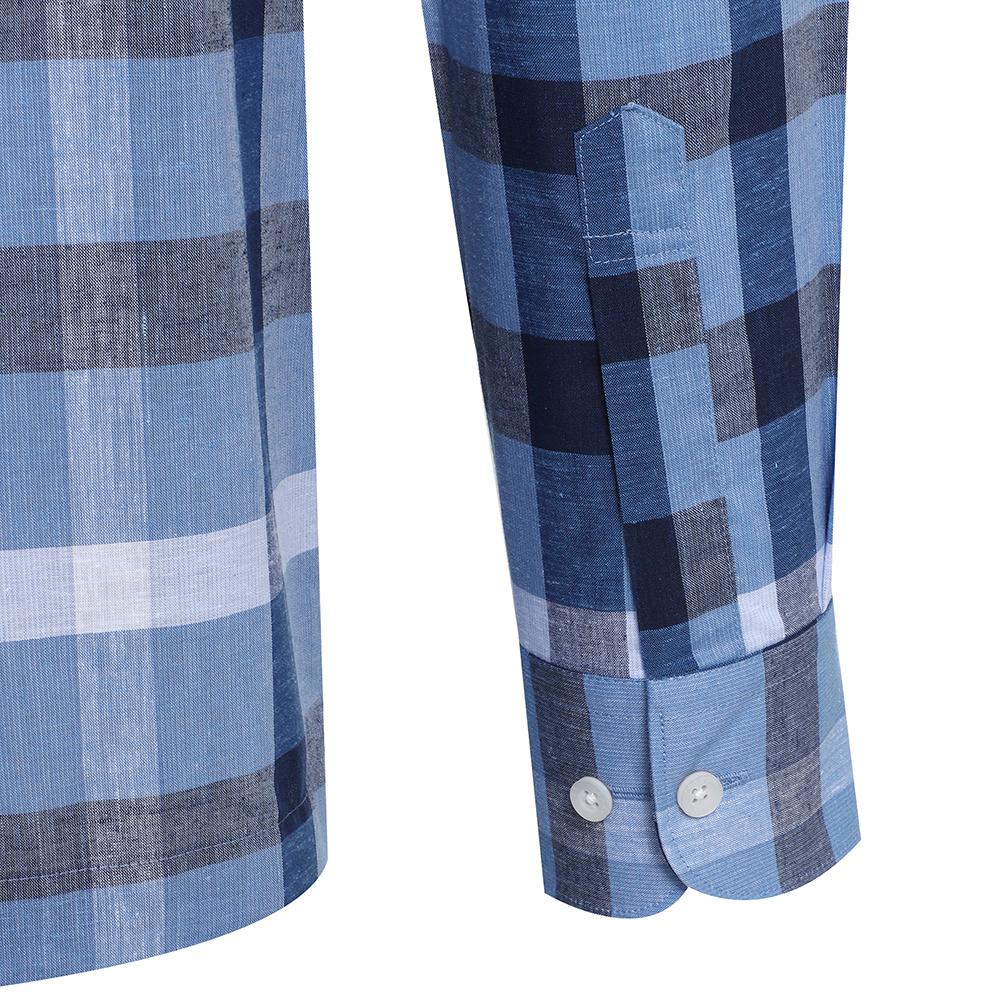 린넨혼방 라지체크 셔츠 레귤러핏 블루