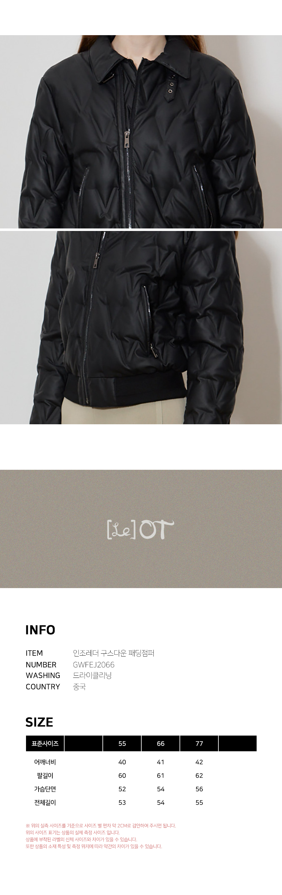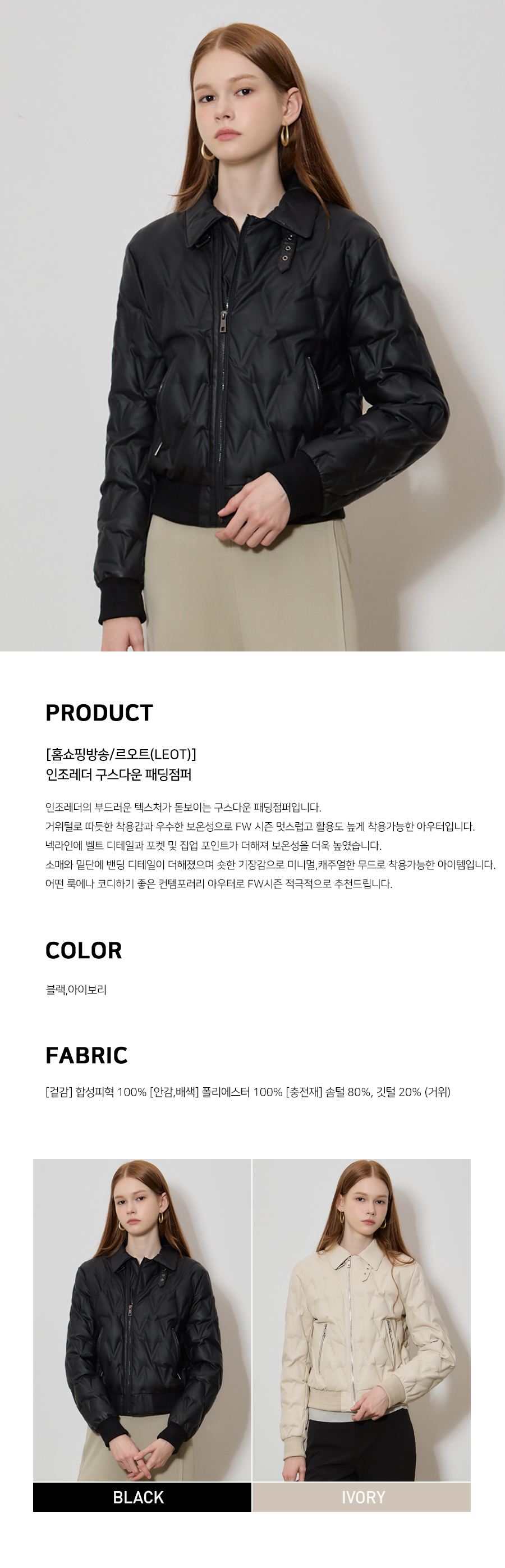 LeOT) 메종 인조가죽 구스다운 충전재 패딩점퍼