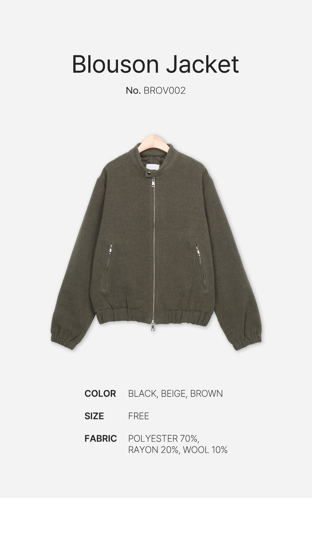 남성 데일리 블루종 울 블랜드 점퍼 스탠드카라 미니멀 자켓 BROV002