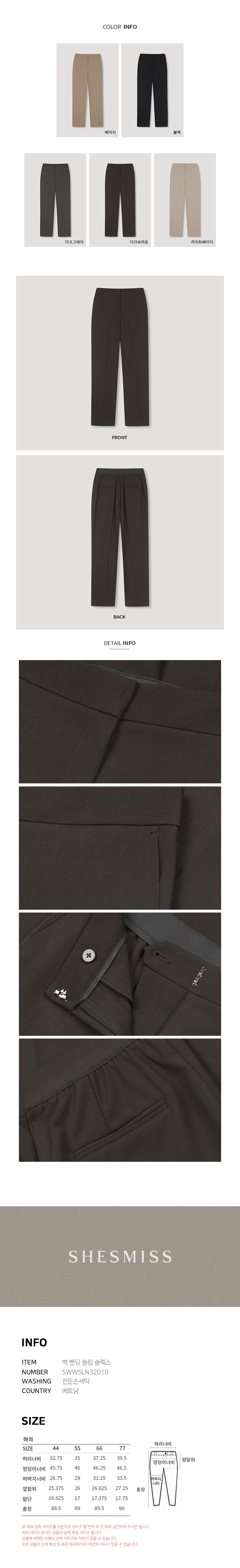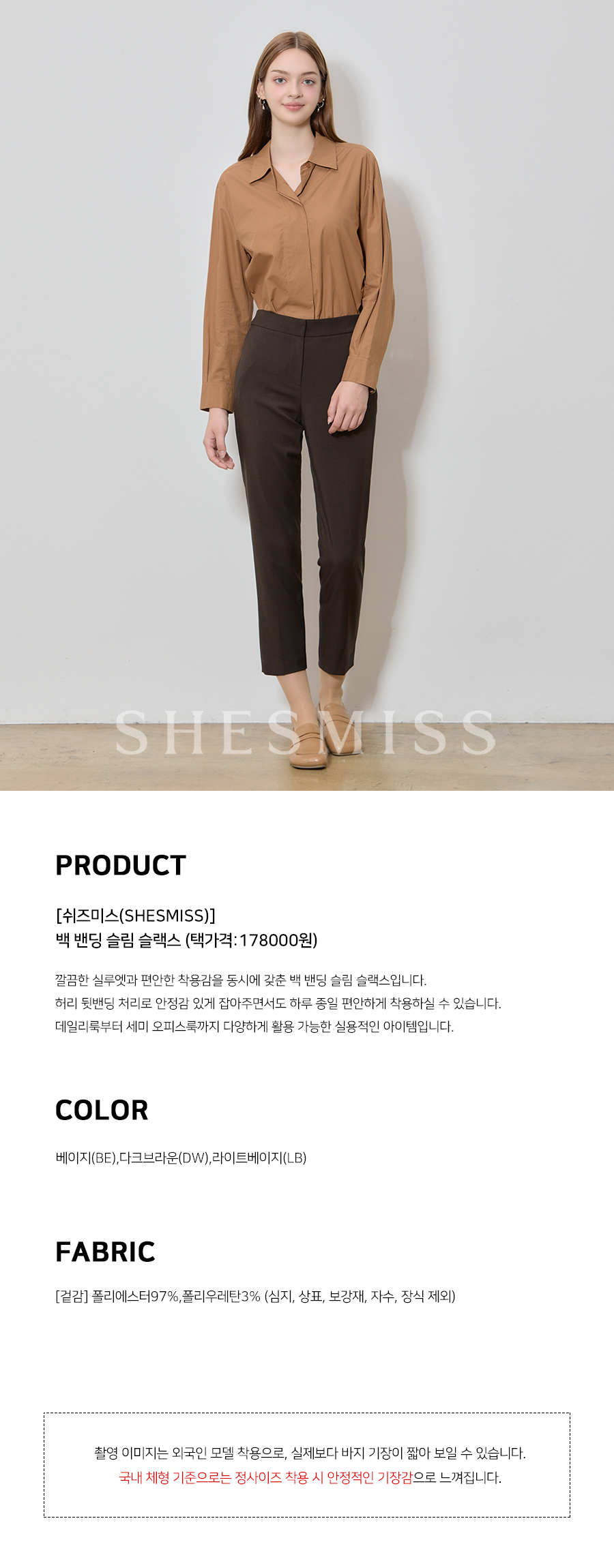 SHESMISS) 폴무드 백 밴딩 슬림 슬랙스 택가격 178000원)