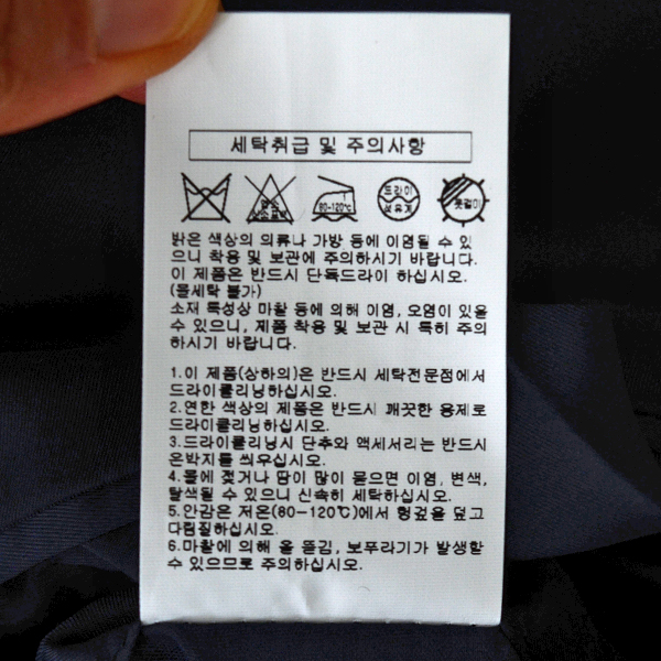 세탁방법 및 취급시 주의사항 : 드라이크리닝