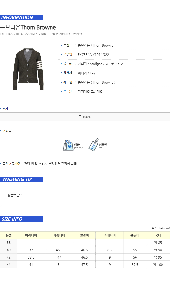 명품 여성 브이넥 가디건 FKC334A Y1014 322