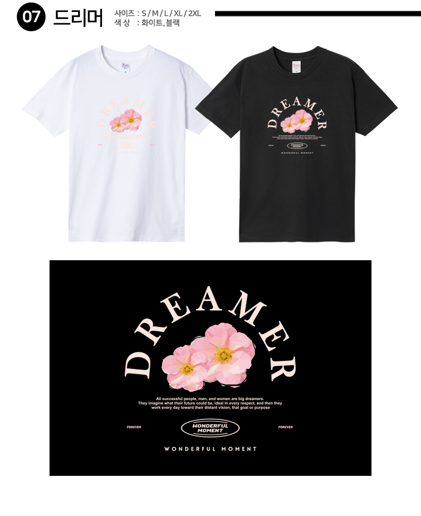 원더풀모먼트 그래픽 브랜드 티셔츠 A 남자 여자 반팔티 20수 남성 여성 면티 빅사이즈 검정 흰색 반팔 티