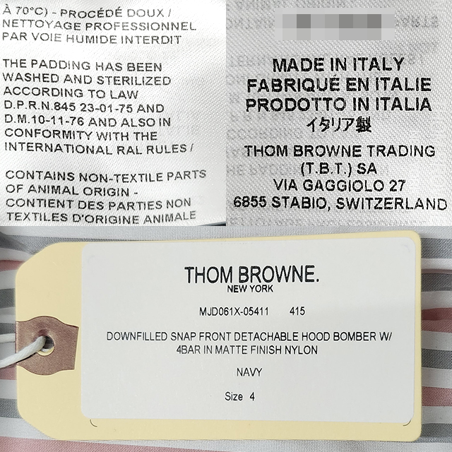 ▣ 상품명 : 톰브라운 사선 완장 4바 매트 나일론 다운 패딩 보머 자켓