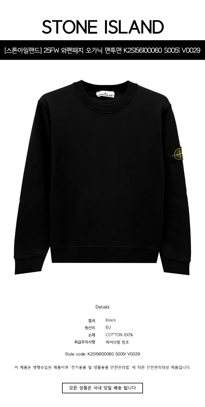 명품 25FW 와펜패치 오가닉 코튼 플리스 맨투맨 블랙 남성 맨투맨 K2S156100060 S0051 V0029