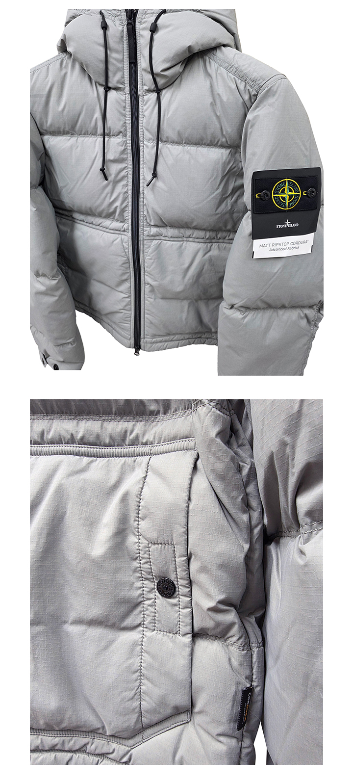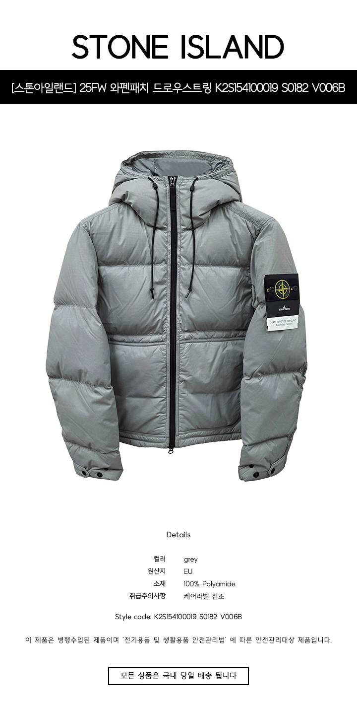 명품 25FW 와펜패치 드로우스트링 후드 패딩 재킷 그레이 남성 패딩 K2S154100019 S0182 V006B