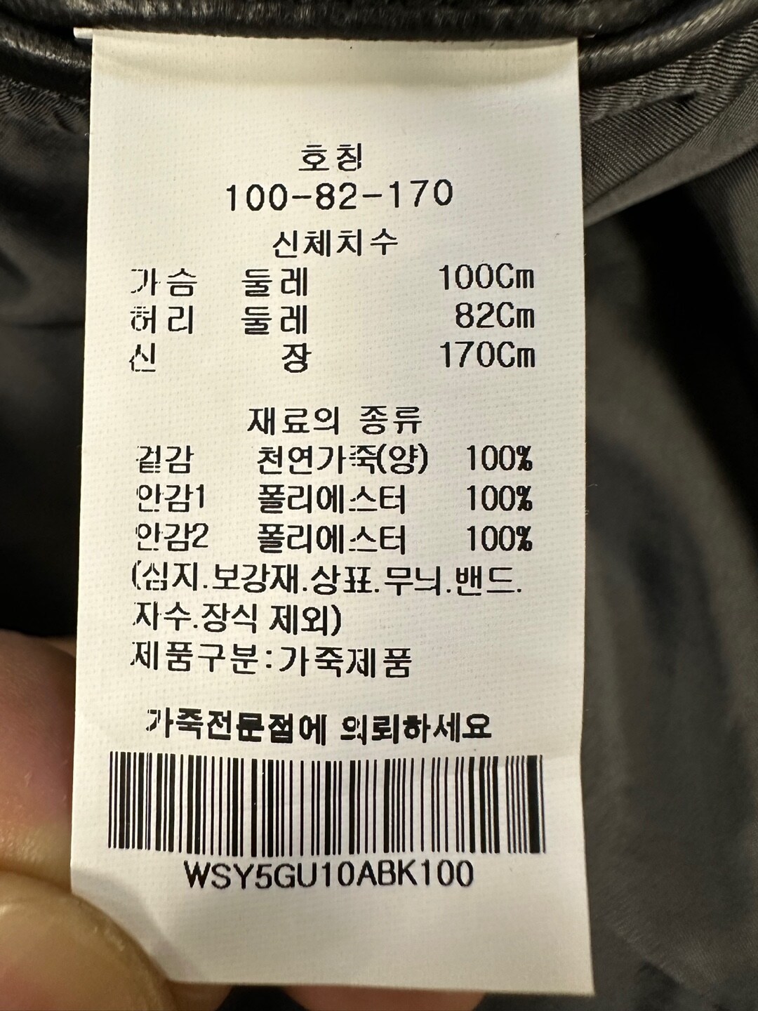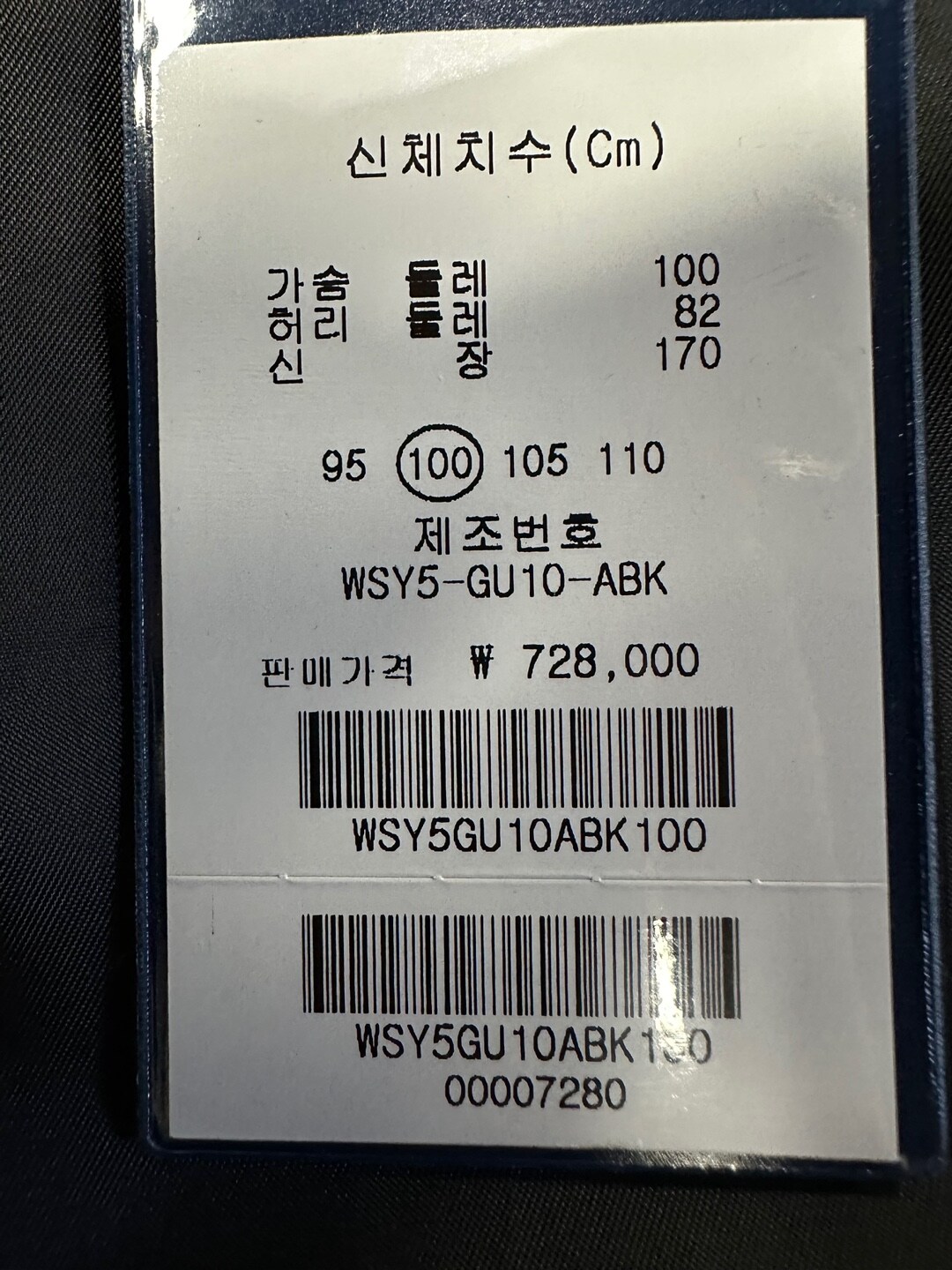 100 가슴둘레 100cm 신장 170-180cm