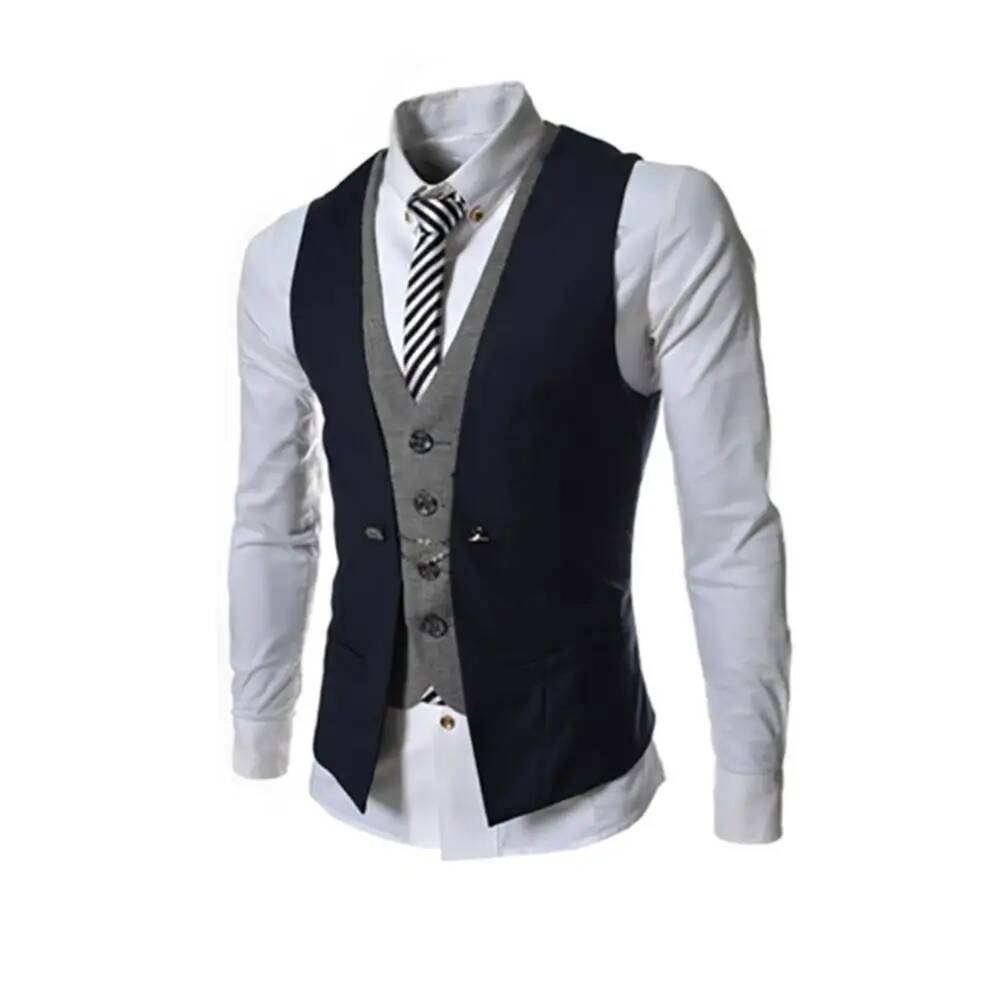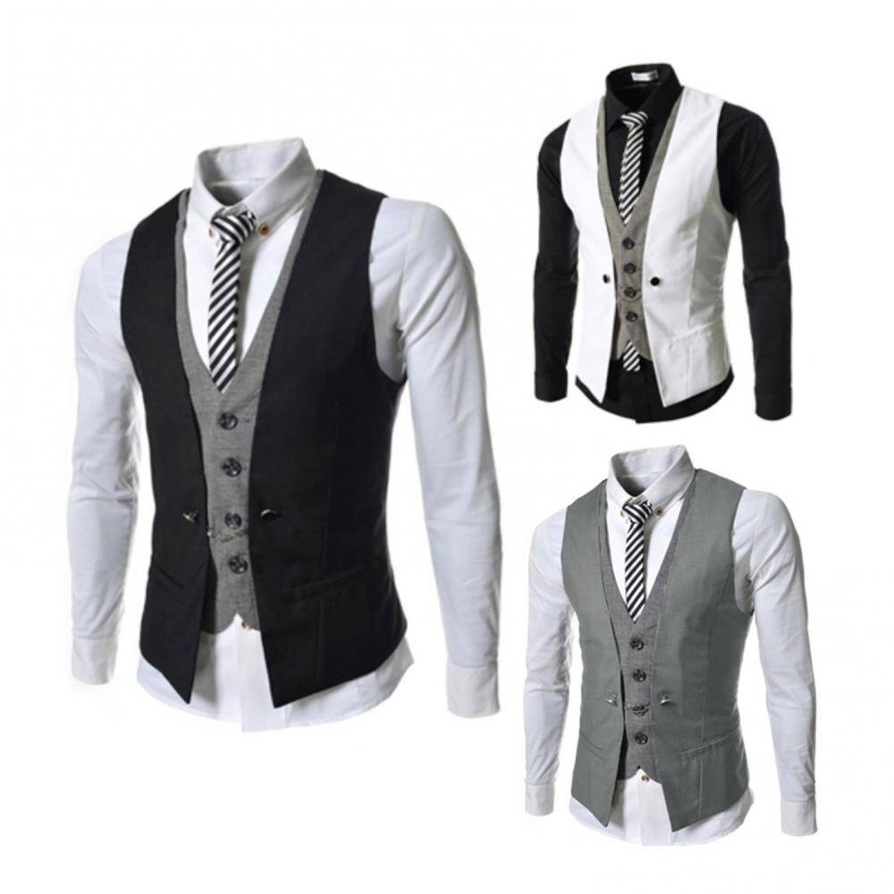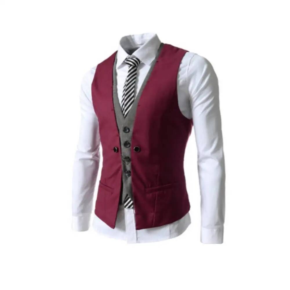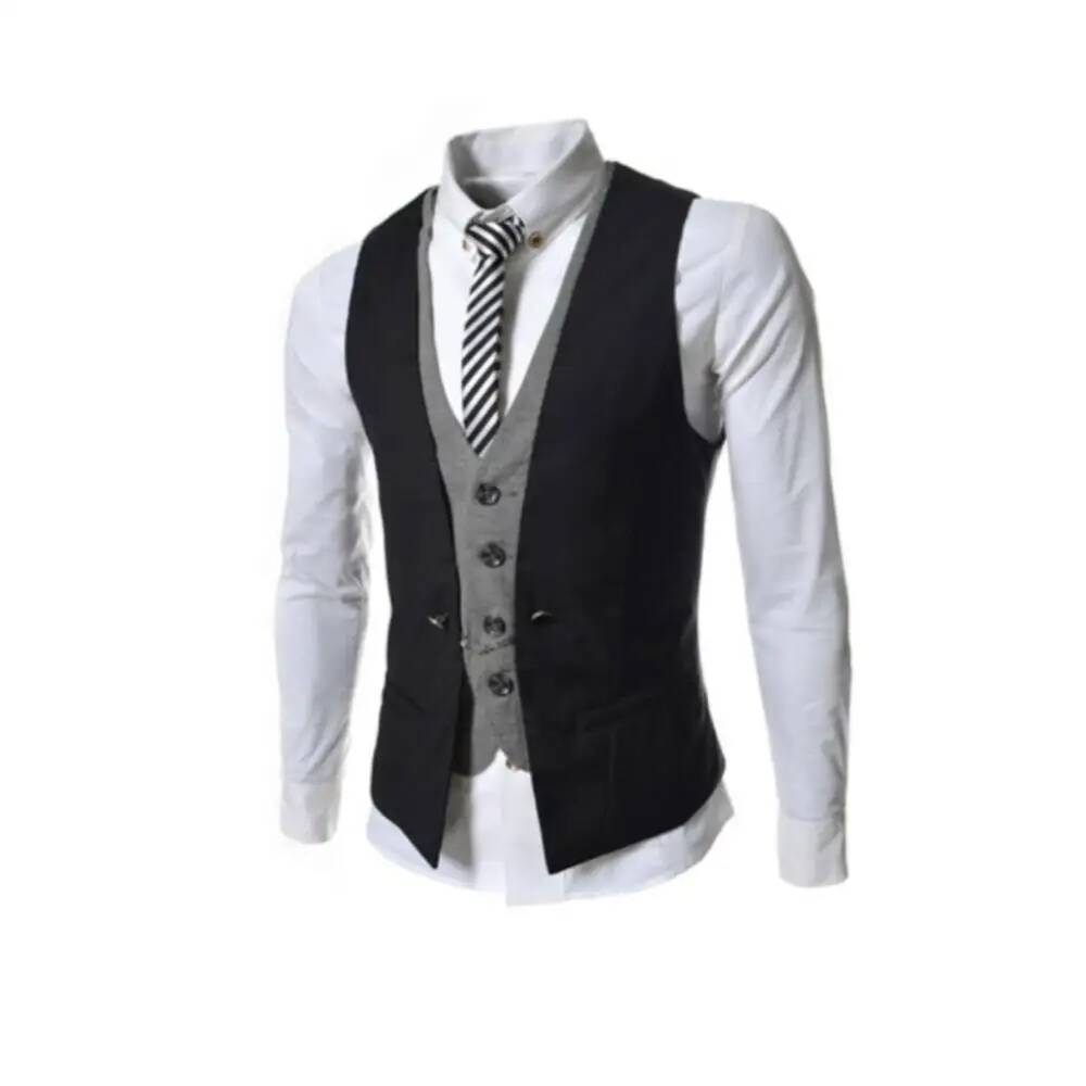 남성 민소매 V 넥 싱글 브레스트 슬림 Gilet 비즈니스 정장 탑 조끼