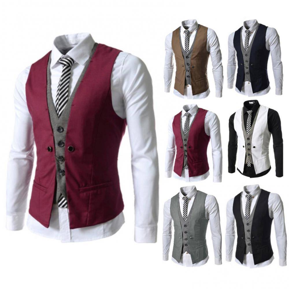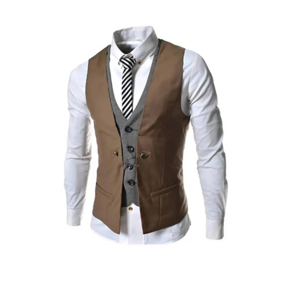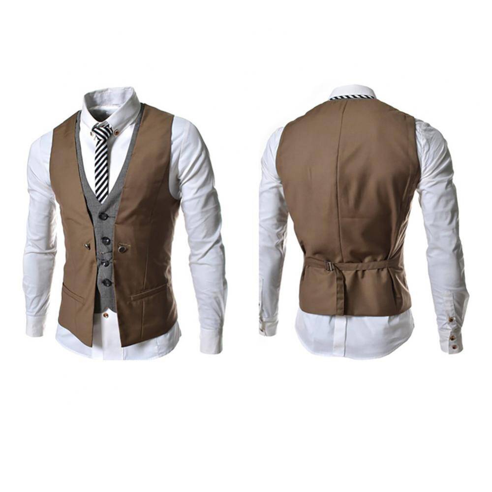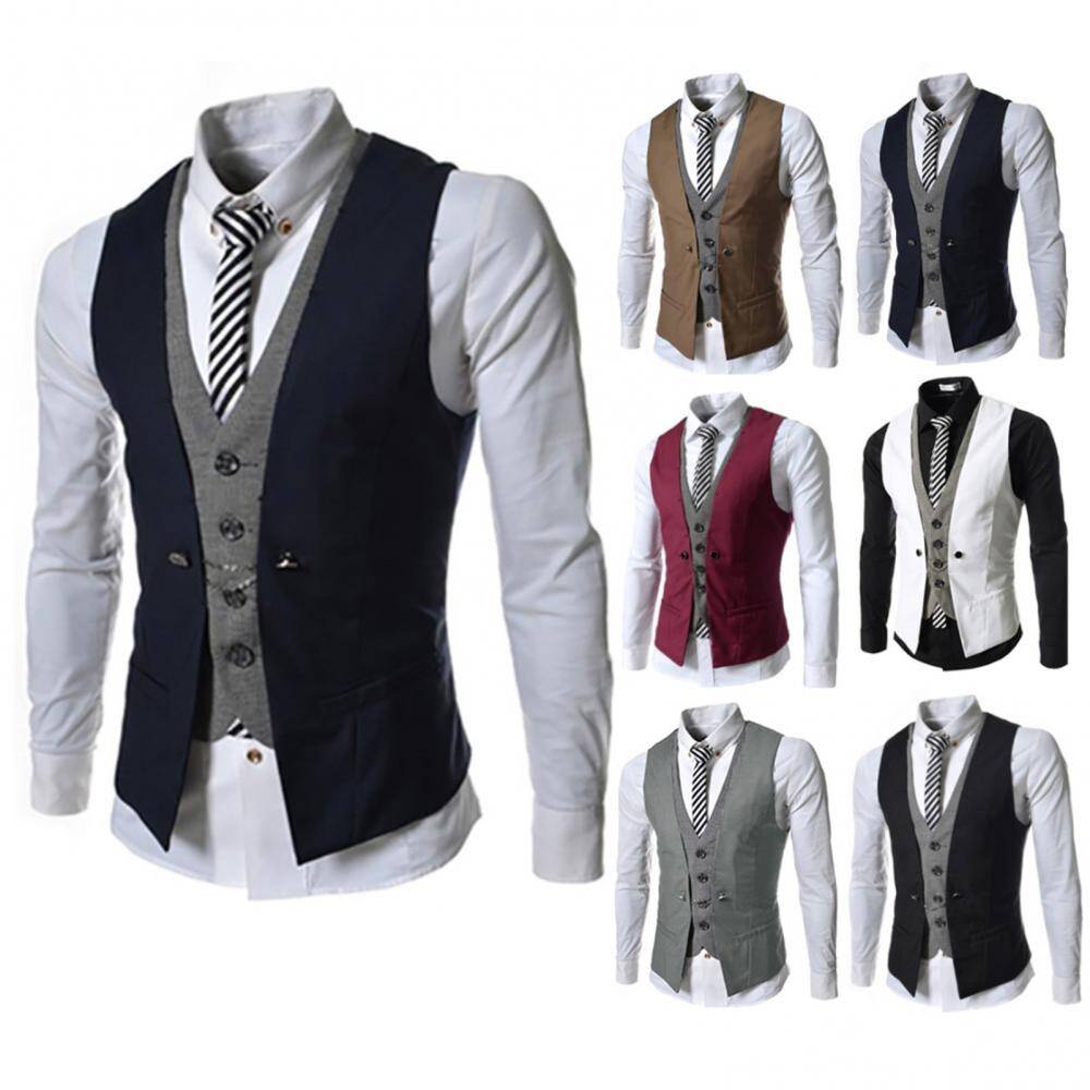 남성 민소매 V 넥 싱글 브레스트 슬림 Gilet 비즈니스 정장 탑 조끼