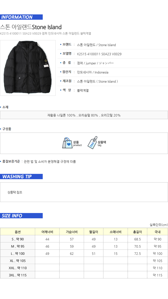 재질 : 재활용 나일론 100% , 오리솜털 80% , 오리깃털 20%