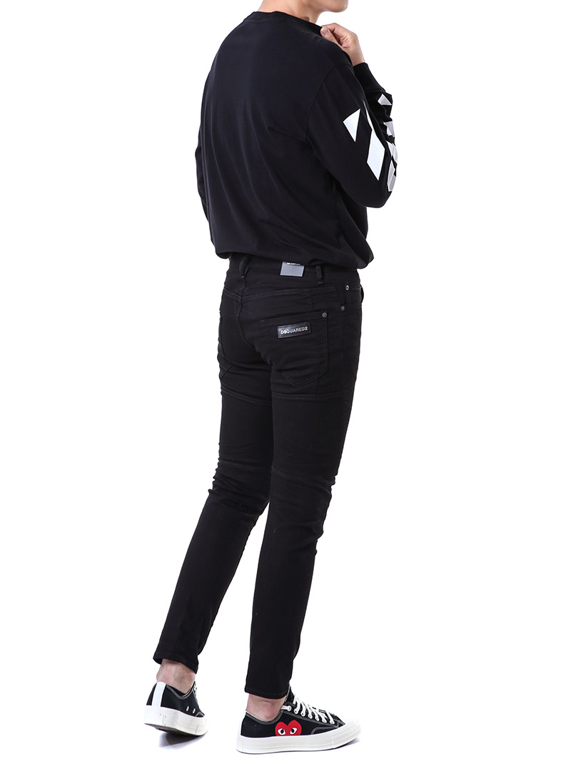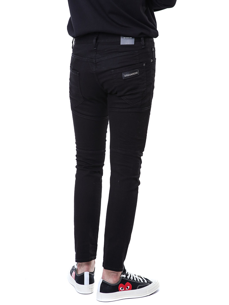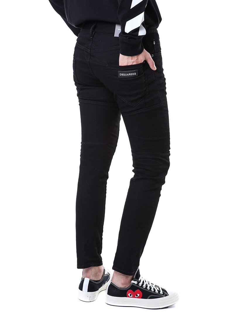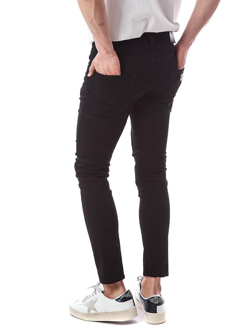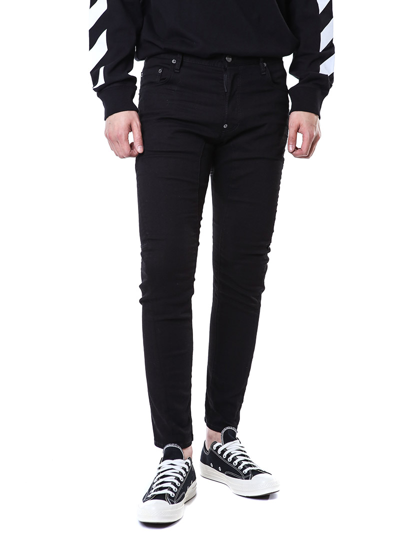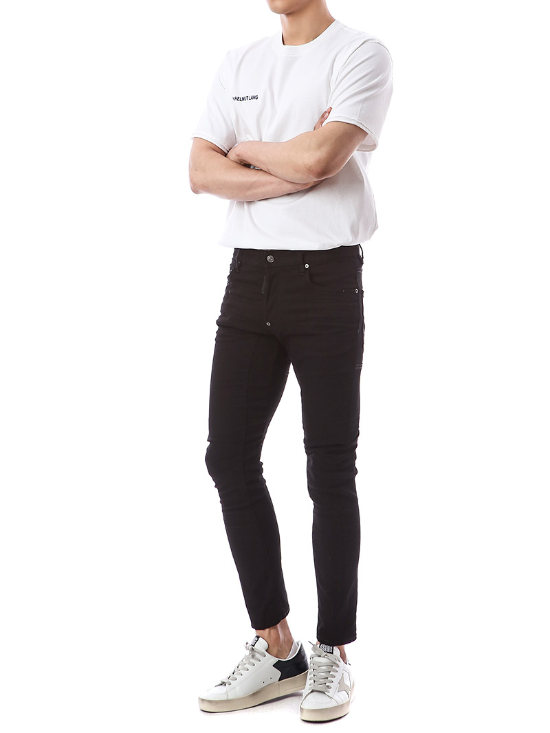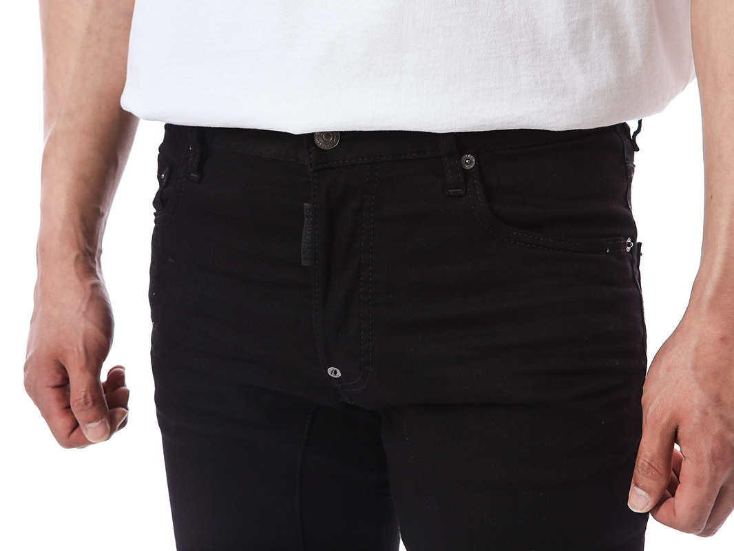 명품 디스퀘어드 단독 스페셜오더 메탈로고 래더패치 스트레치 블랙진74LB1024
