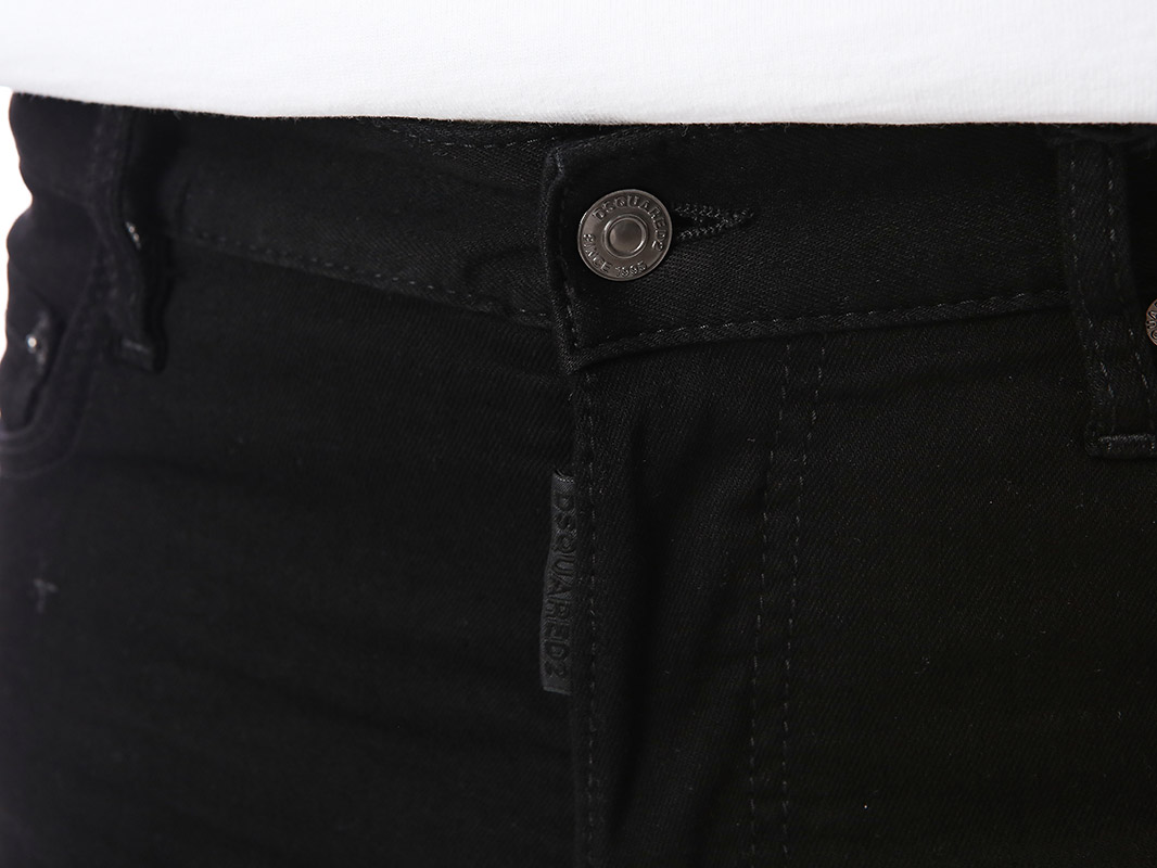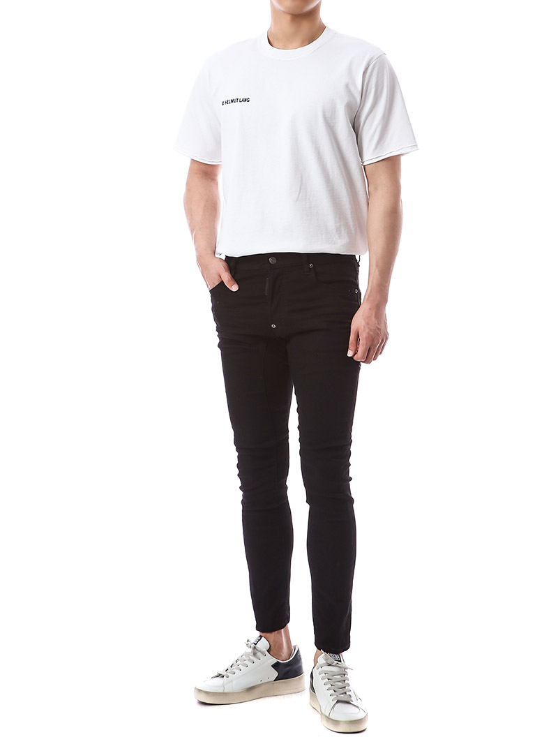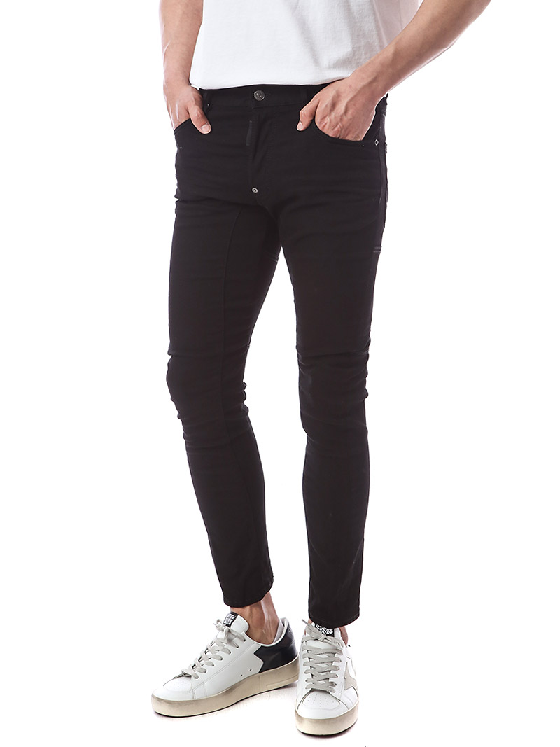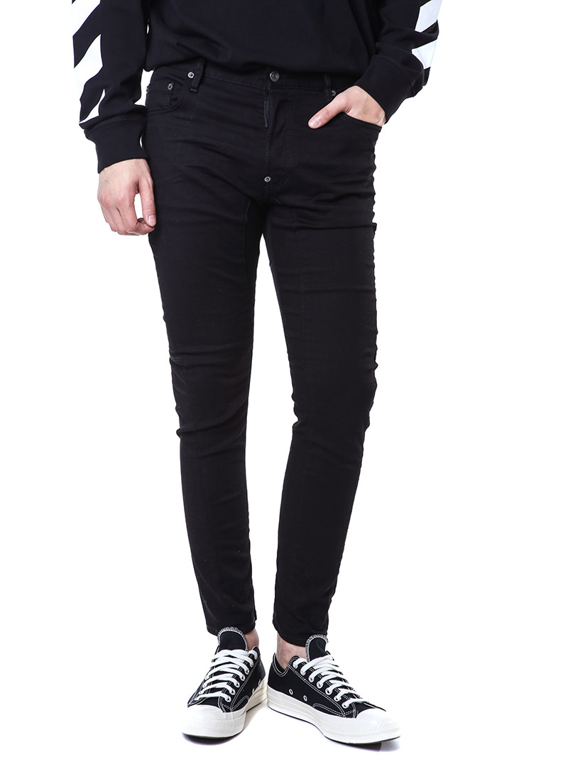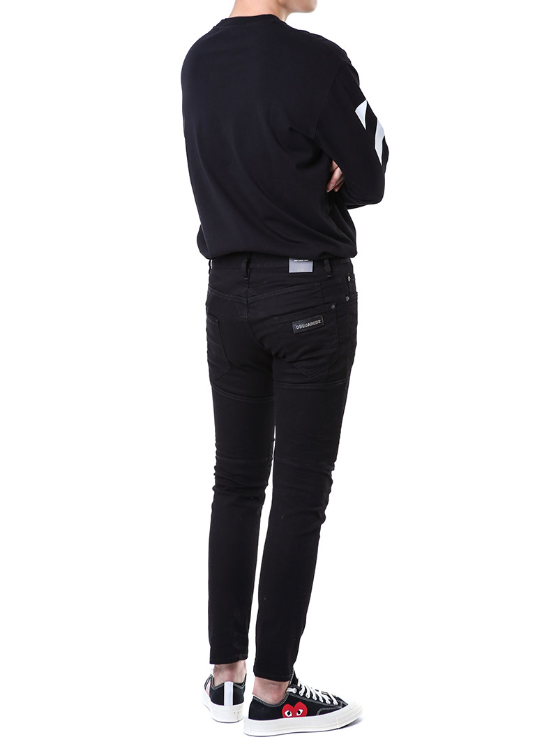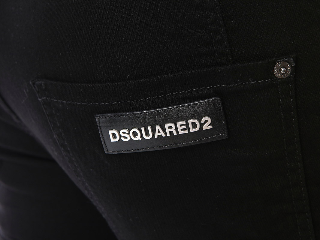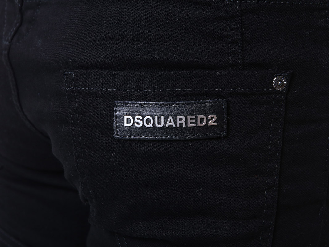 명품 디스퀘어드 단독 스페셜오더 메탈로고 래더패치 스트레치 블랙진74LB1024