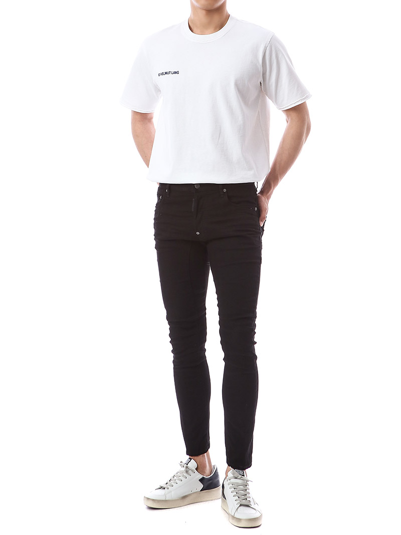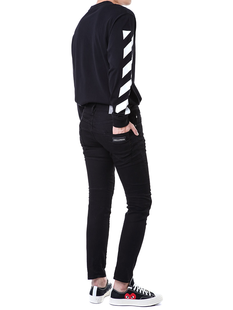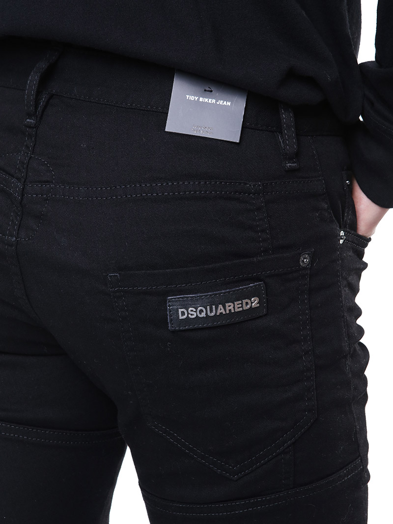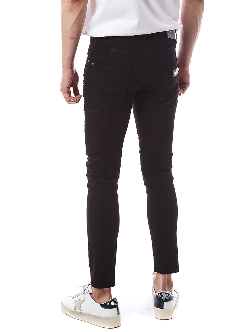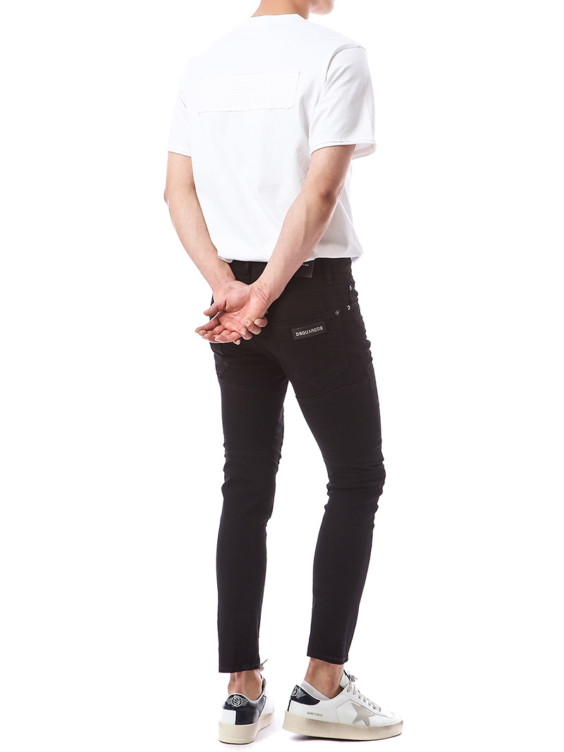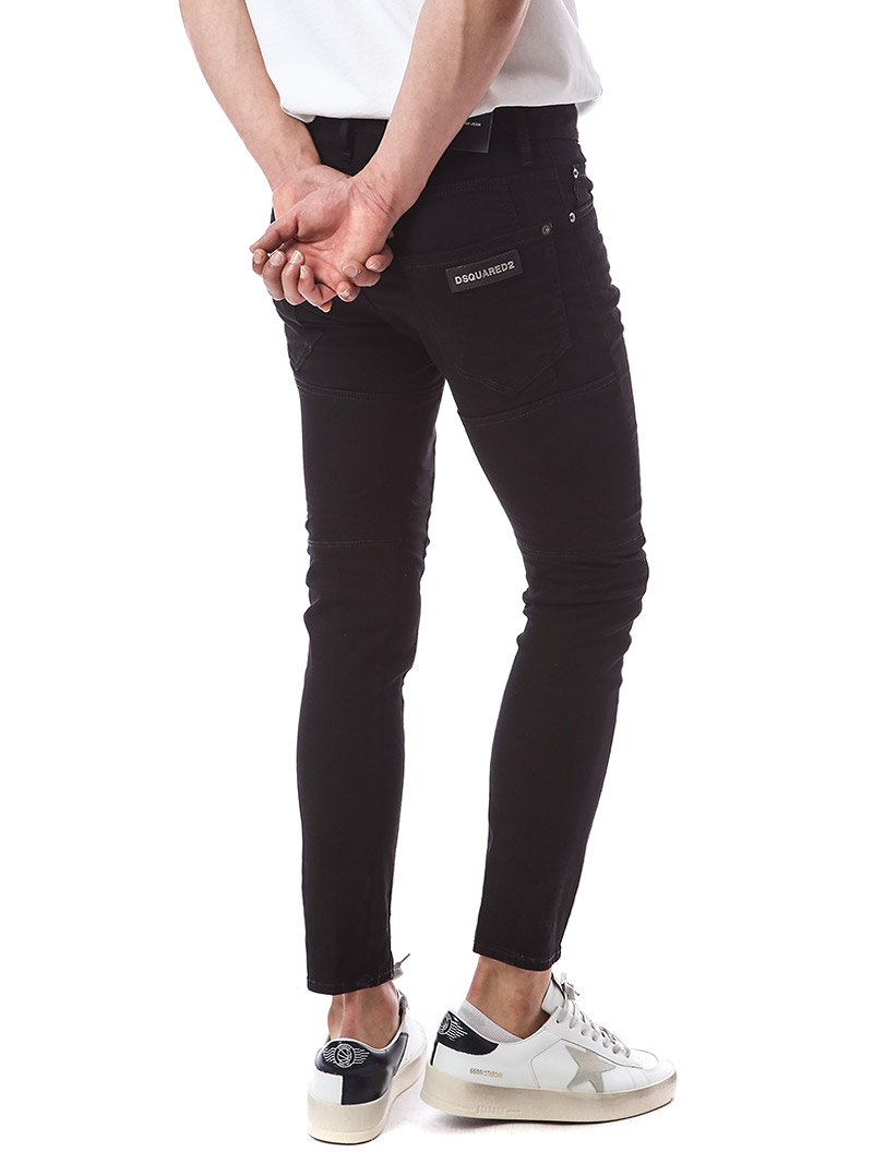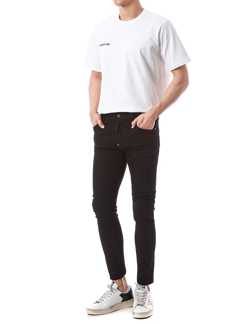 명품 디스퀘어드 단독 스페셜오더 메탈로고 래더패치 스트레치 블랙진74LB1024