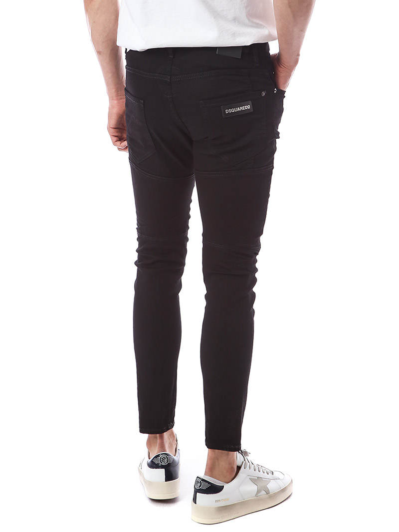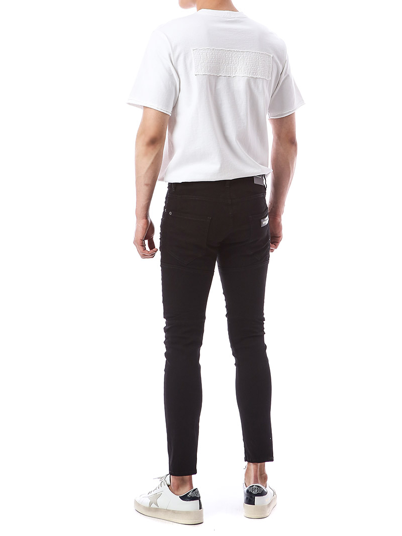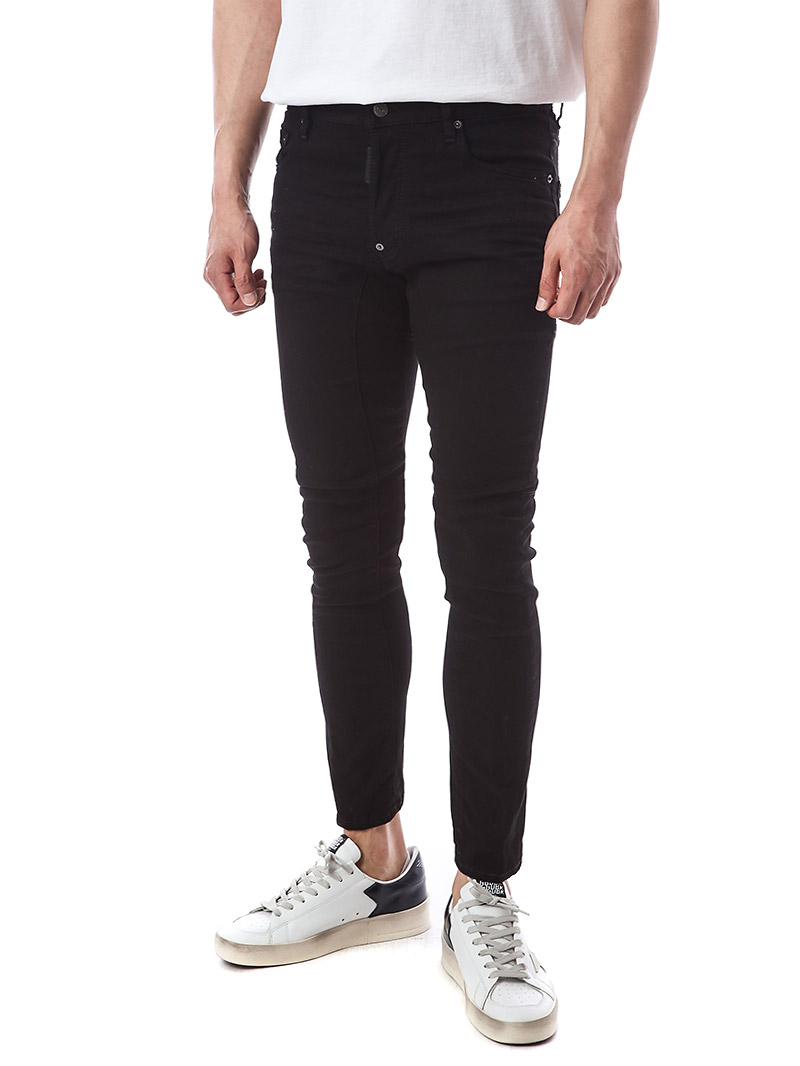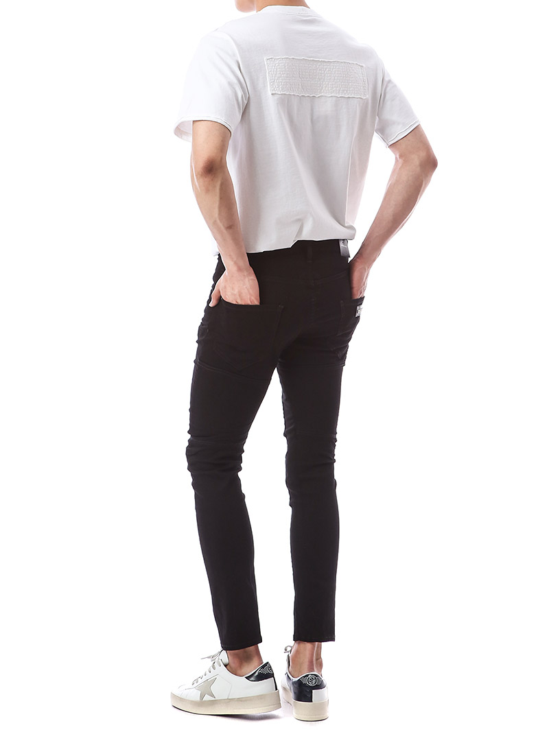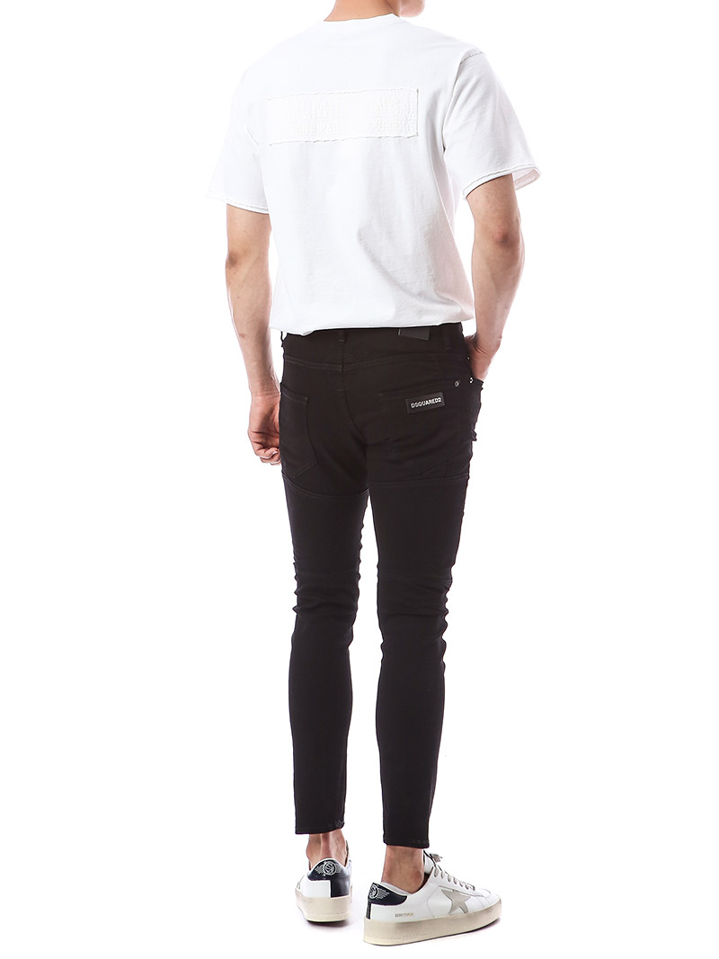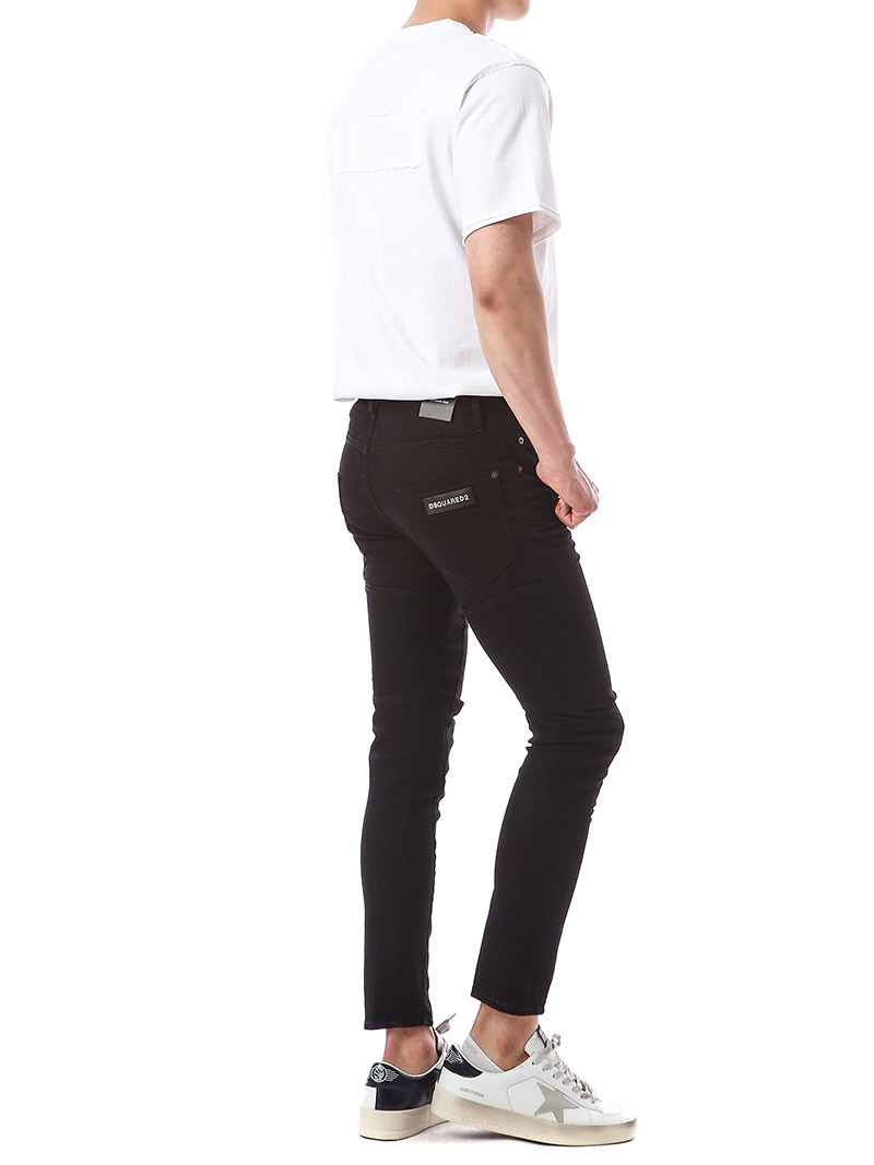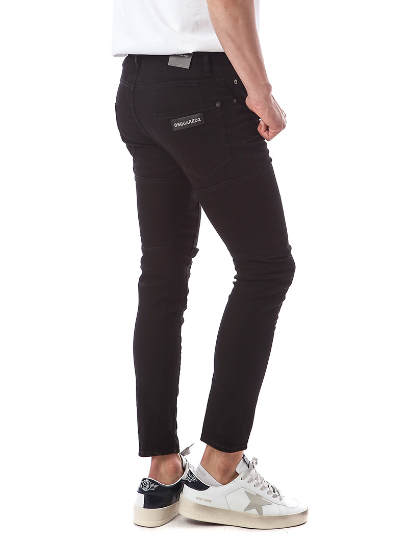 명품 디스퀘어드 단독 스페셜오더 메탈로고 래더패치 스트레치 블랙진74LB1024