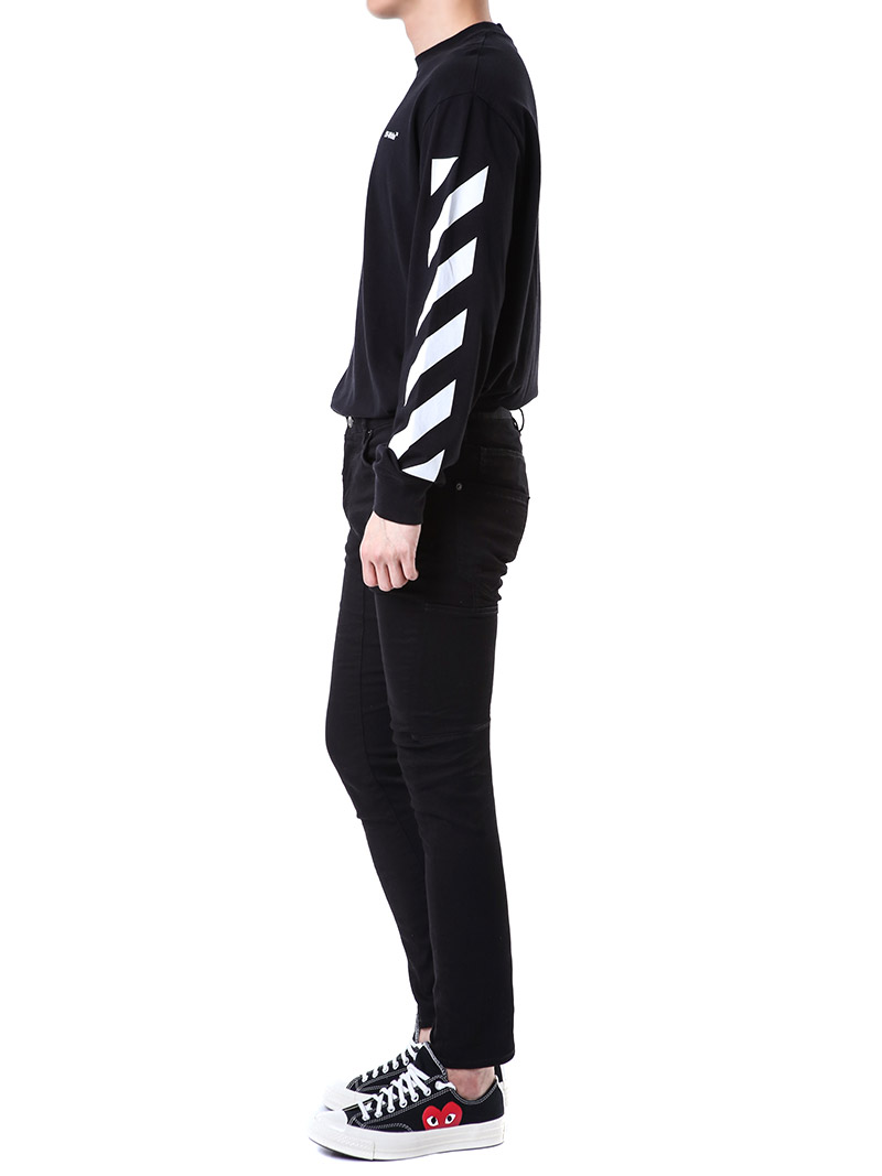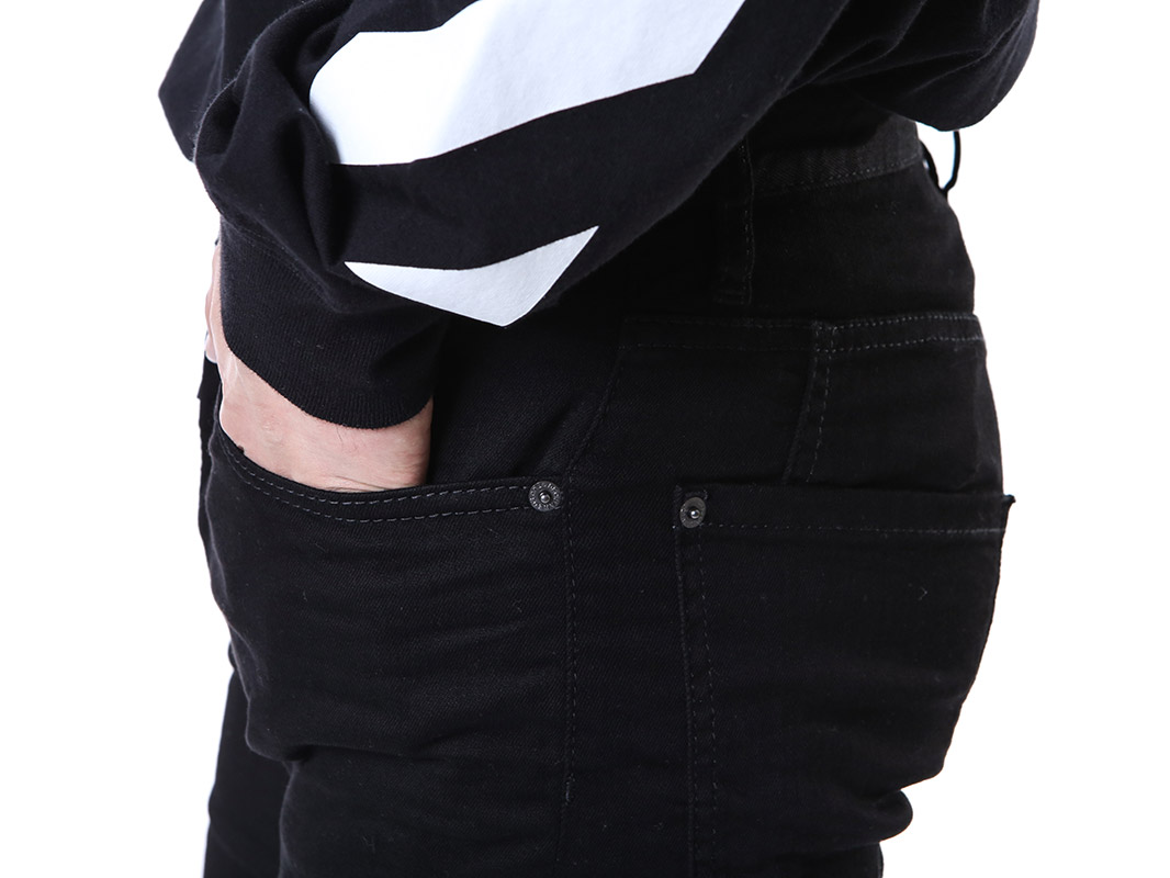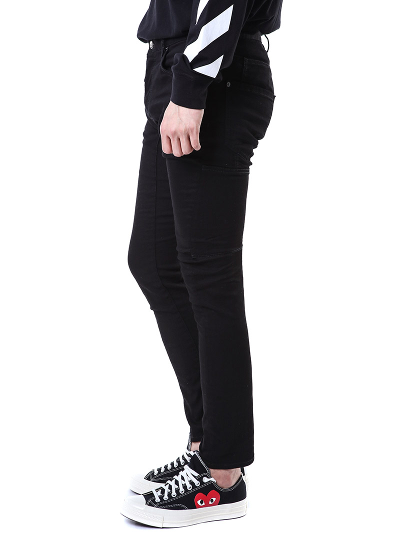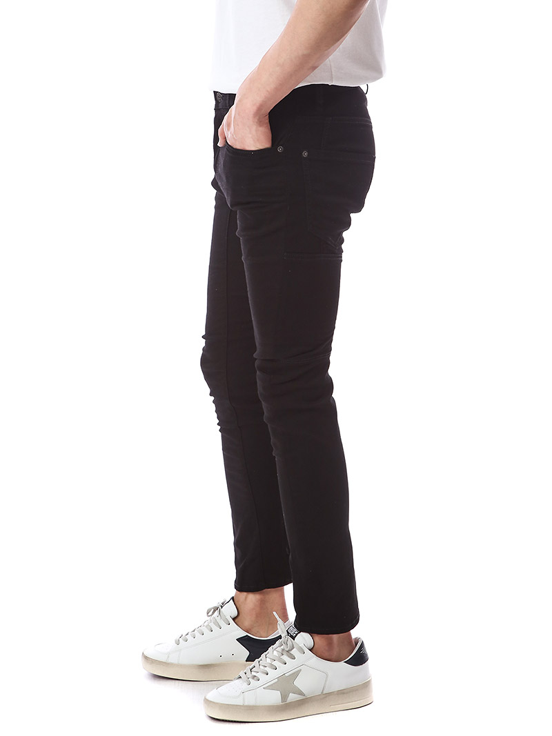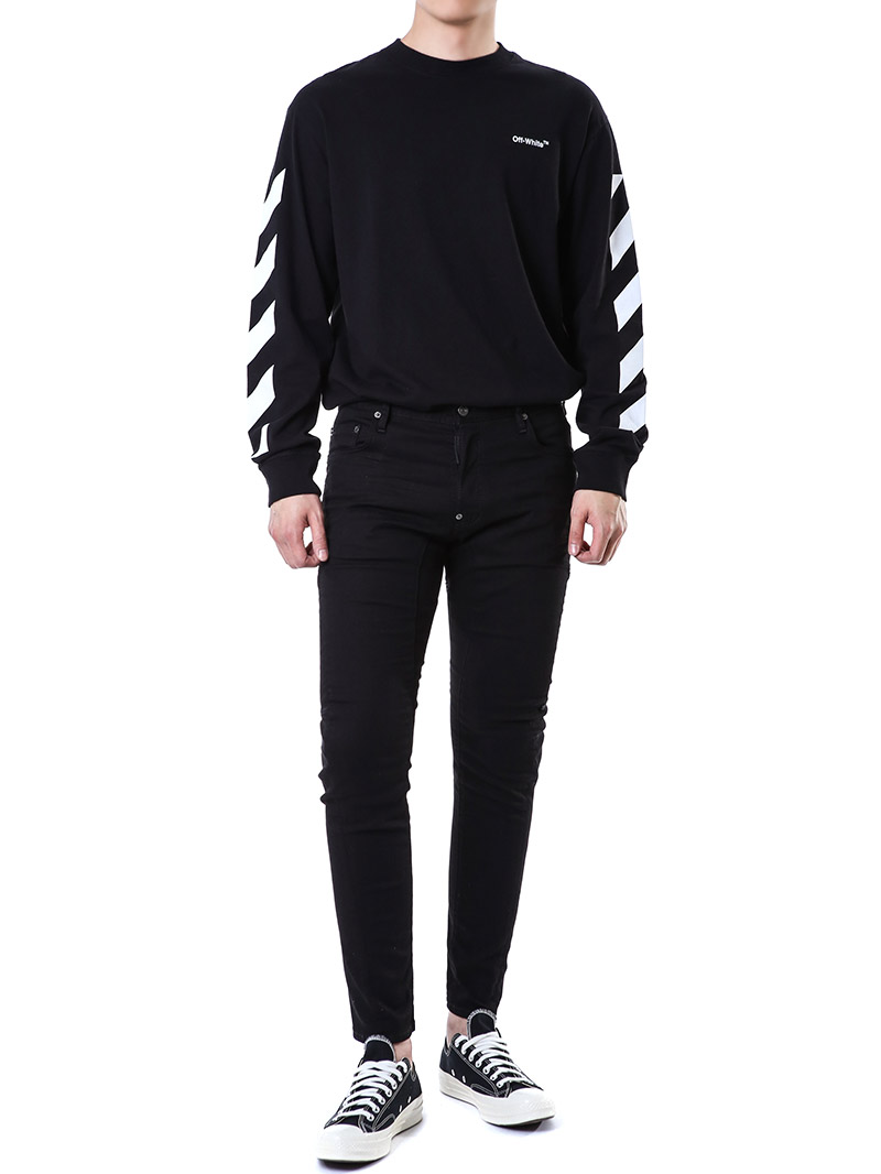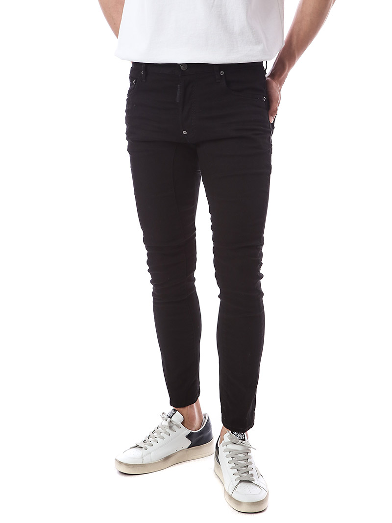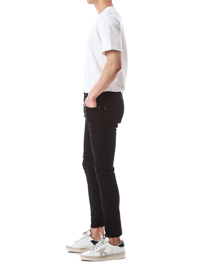명품 디스퀘어드 단독 스페셜오더 메탈로고 래더패치 스트레치 블랙진74LB1024
