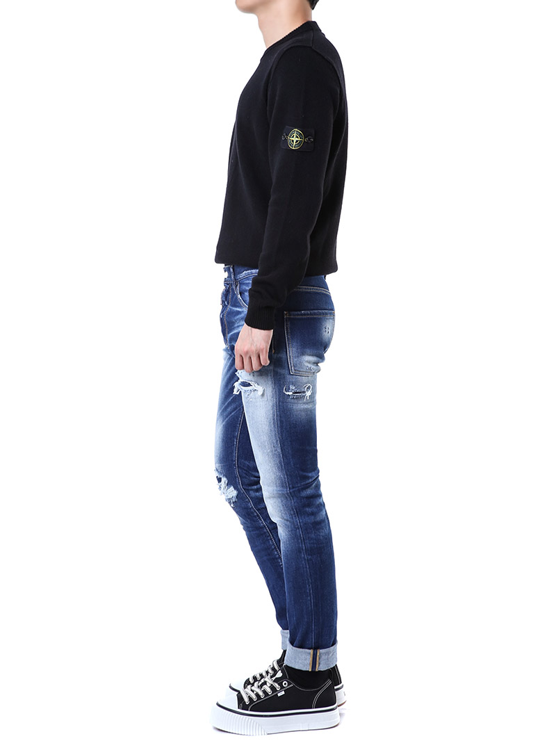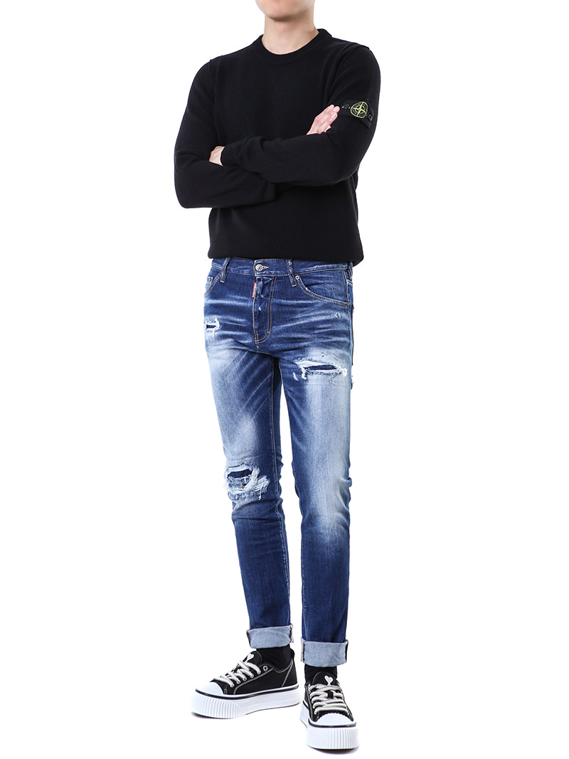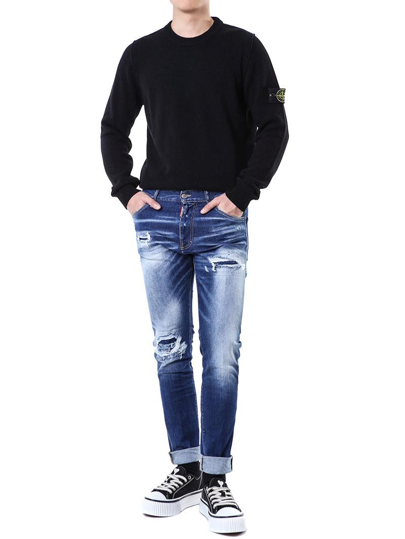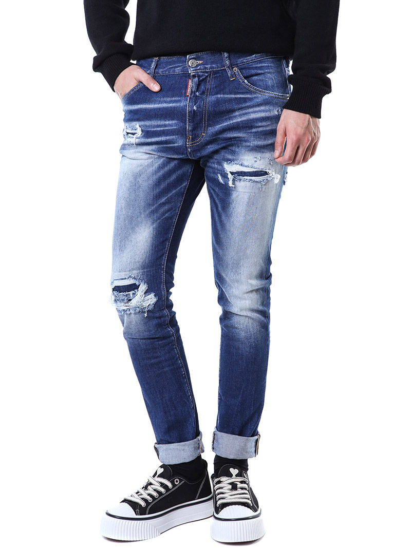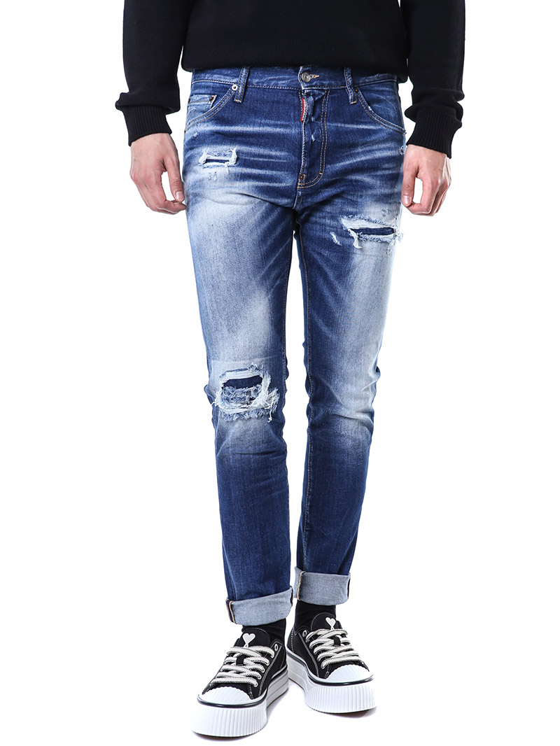 명품 디스퀘어드 크래프트 로고패치 디스덧댐 중청 워싱진74LB1452