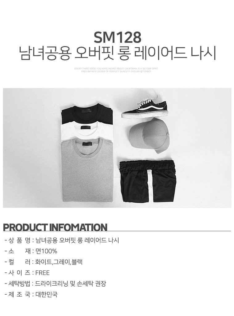 탑보이탑보이 남녀공용 오버핏 롱 레이어드 나시 (SM128)