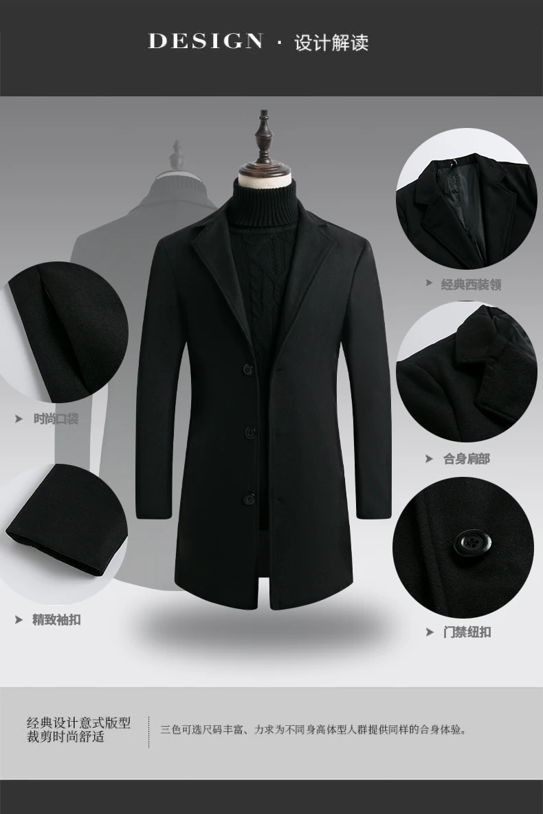 겨울 코트 패딩 남자 하프 롱 남성용 울 혼합 트렌치 더블 브레스트 패션 클래식 T 플러스 사이즈 3xl
