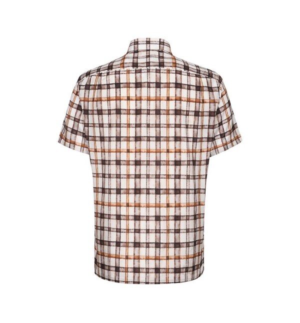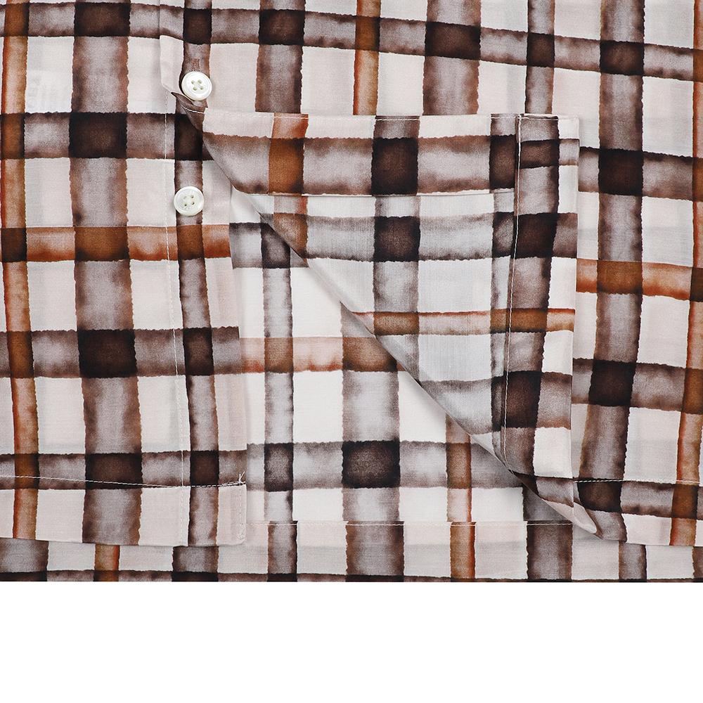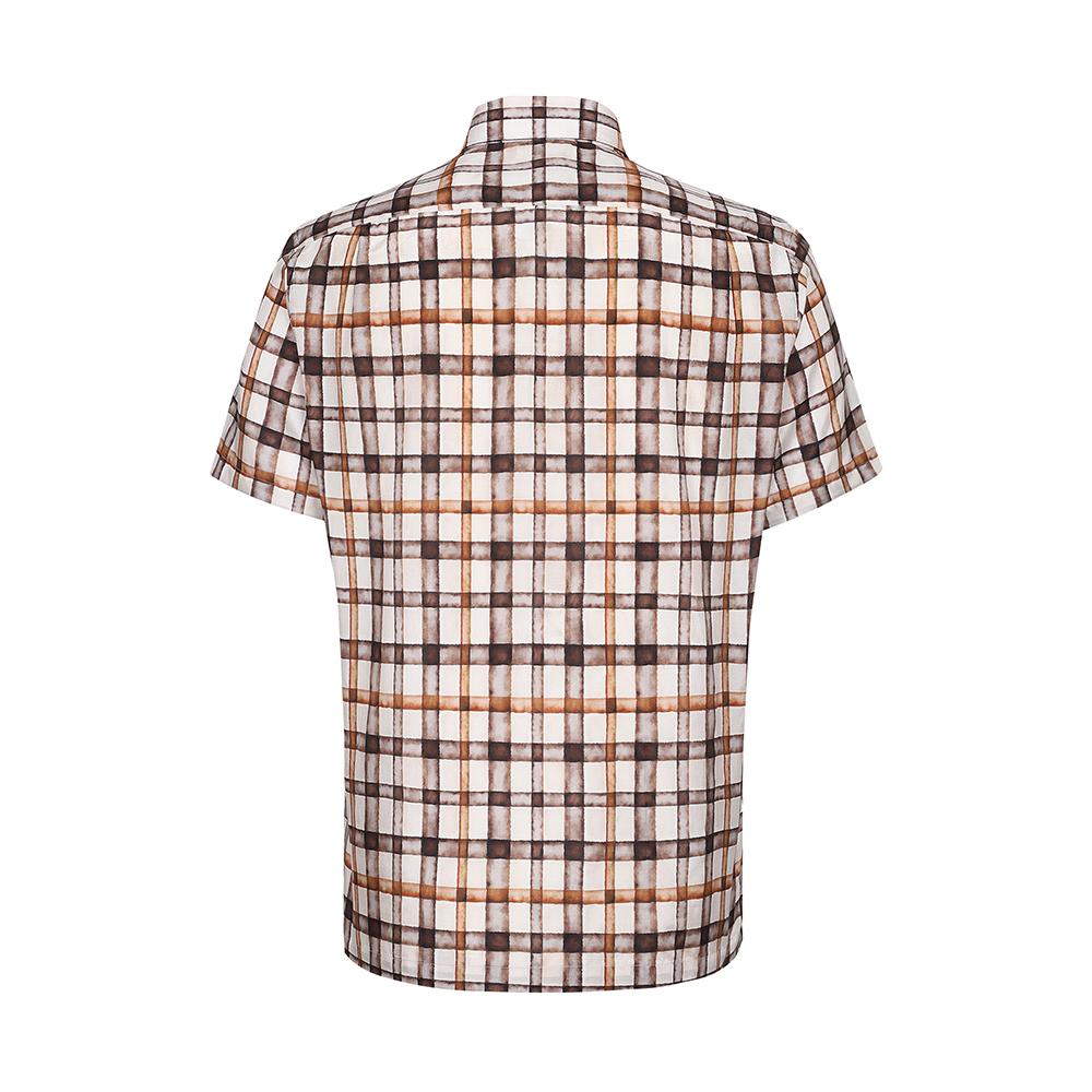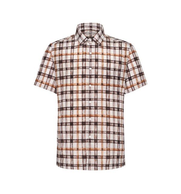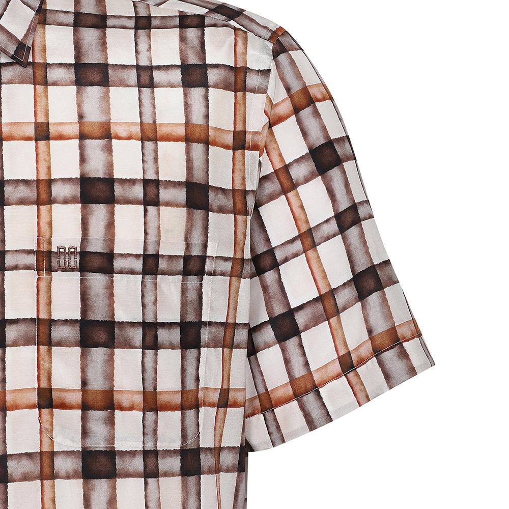 실크혼방 미듐체크 반팔셔츠 레귤러핏 베이지
