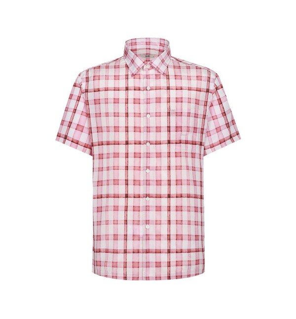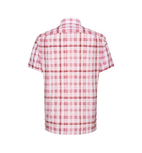 실크혼방 미듐체크 반팔셔츠 레귤러핏 핑크