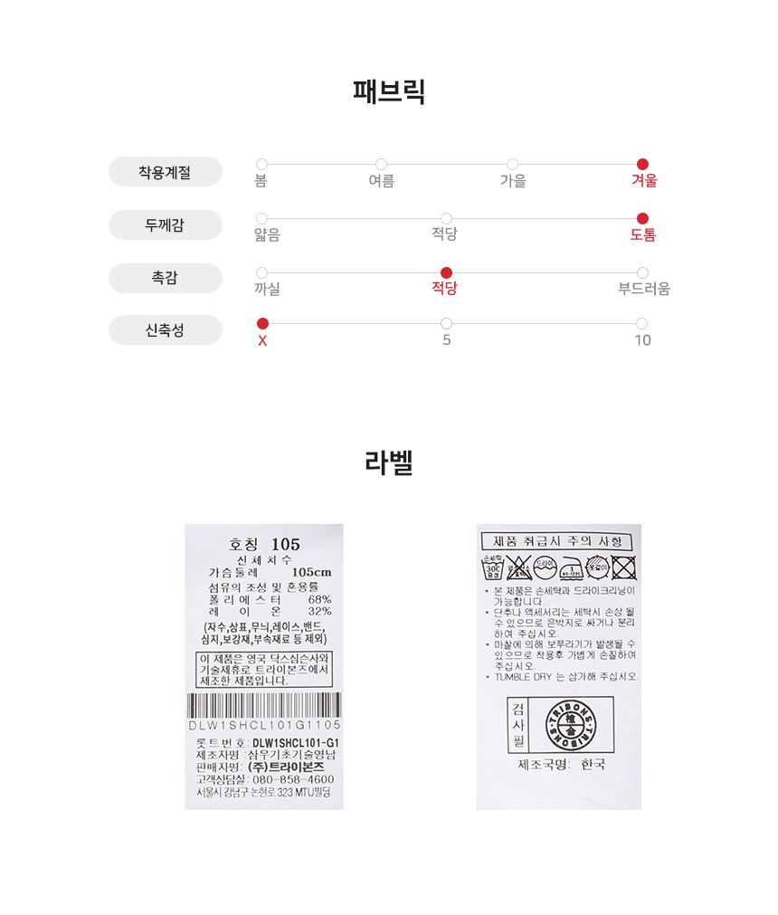폴리에스터 혼방으로 인해 구김이 덜 가고, 세탁 후에도 우수한 형태 유지